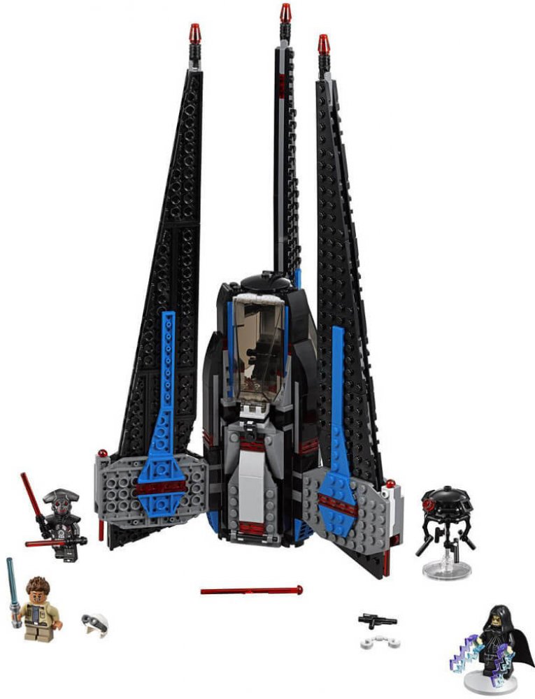 Obsahuje model lodi s trojkřídlým designem s pružinovým vystřelovačem na každém křídle, otevíratelnými bočními poklopy ukrývajícími skladiště zbraní, přístupovým žebříkem, vězeňskou celou s prostorem pro minifigurku a otevíracím kokpitem se třemi okny s funkcí otáčení pilota.