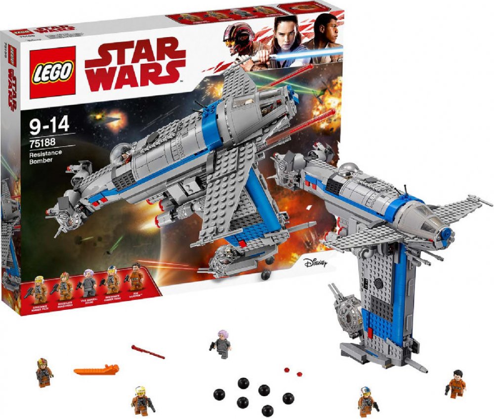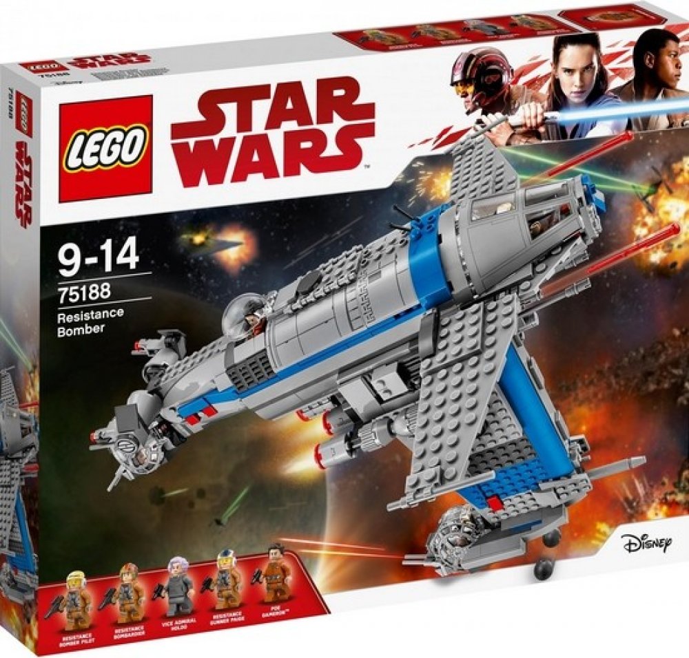LEGO Star Wars - Bombardér Odporu 75188. Přehrávej si akcí nabité mise z LEGO® Star Wars: Epizoda VIII - s Bombardérem Odporu. Obsahuje 780 kostek a věková hranice je od 9 do 14 let.