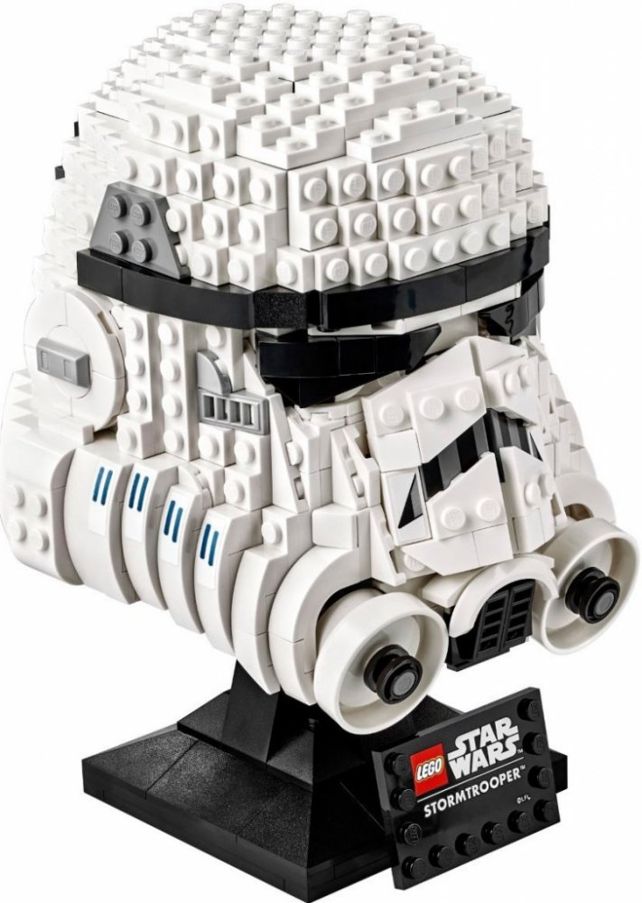 Ikonický vzhled helmy stormtroopera věrně zachycují LEGO kostky a samolepky s potiskem, a navíc je dodávána s podstavcem a informačním štítkem, díky čemuž upoutá pozornost na výstavce doma i v kanceláři.