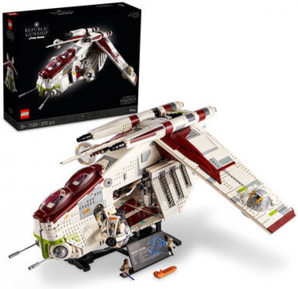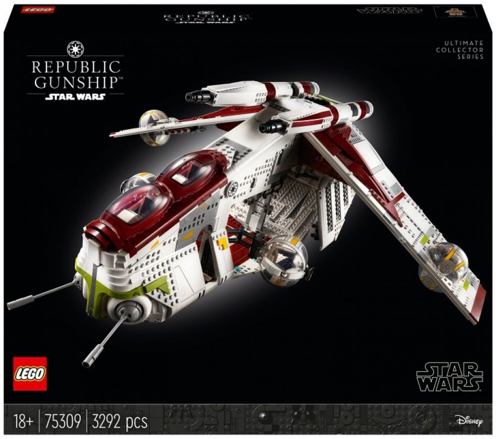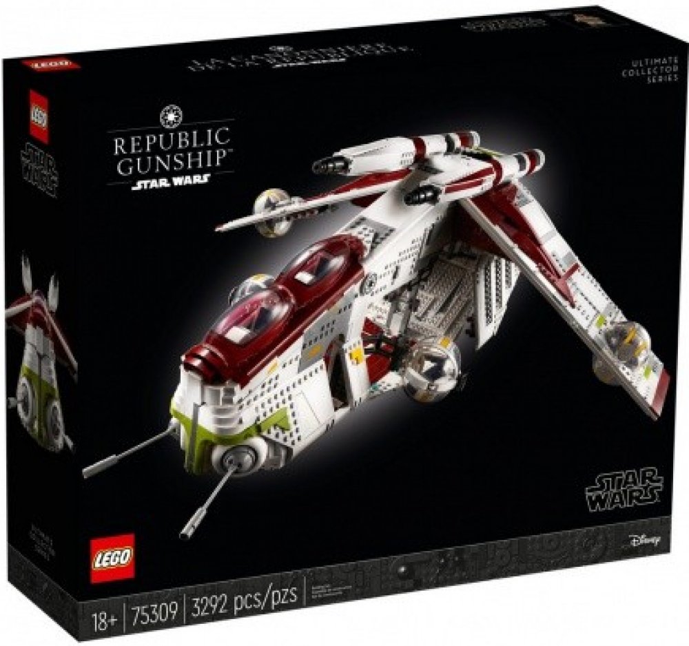 Oživte vzpomínky na epickou bitvu o planetu Geonosis ze seriálu Star Wars: Klonové války s tímto výstavním modelem Válečná loď Republiky (75309) z edice Ultimate Collector Series. Replika útočného transportéru přináší spoustu důmyslných prvků z LEGO® kostek, včetně pilotních kabin, výsuvných palebných kanónů, 2 děl v horní části lodi, dlouhých křídel, otevíracích bočních dveří a řadu detailů v int...