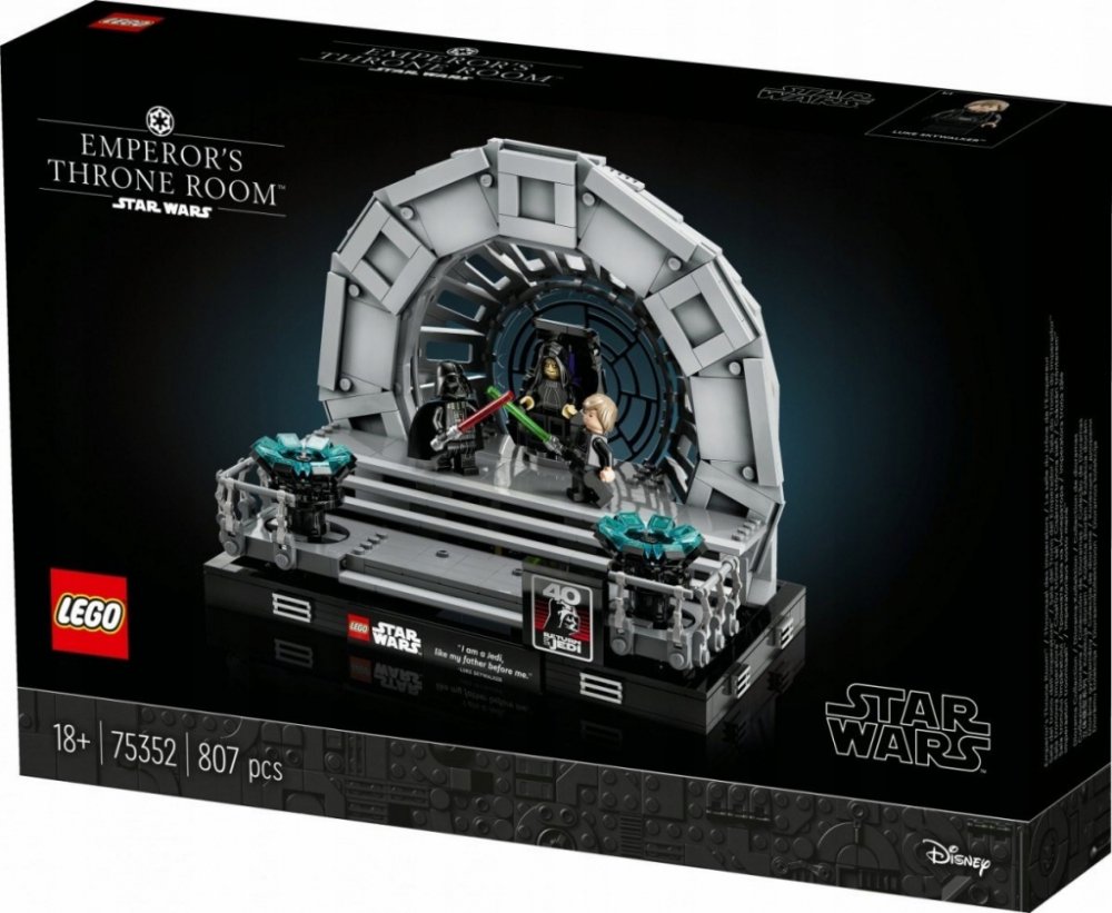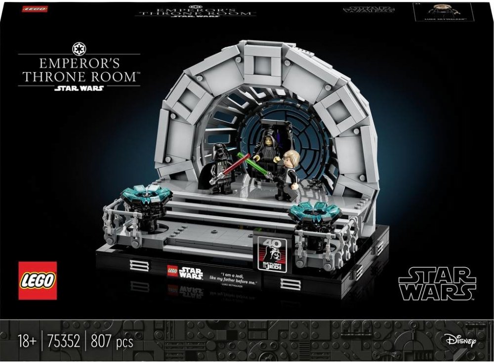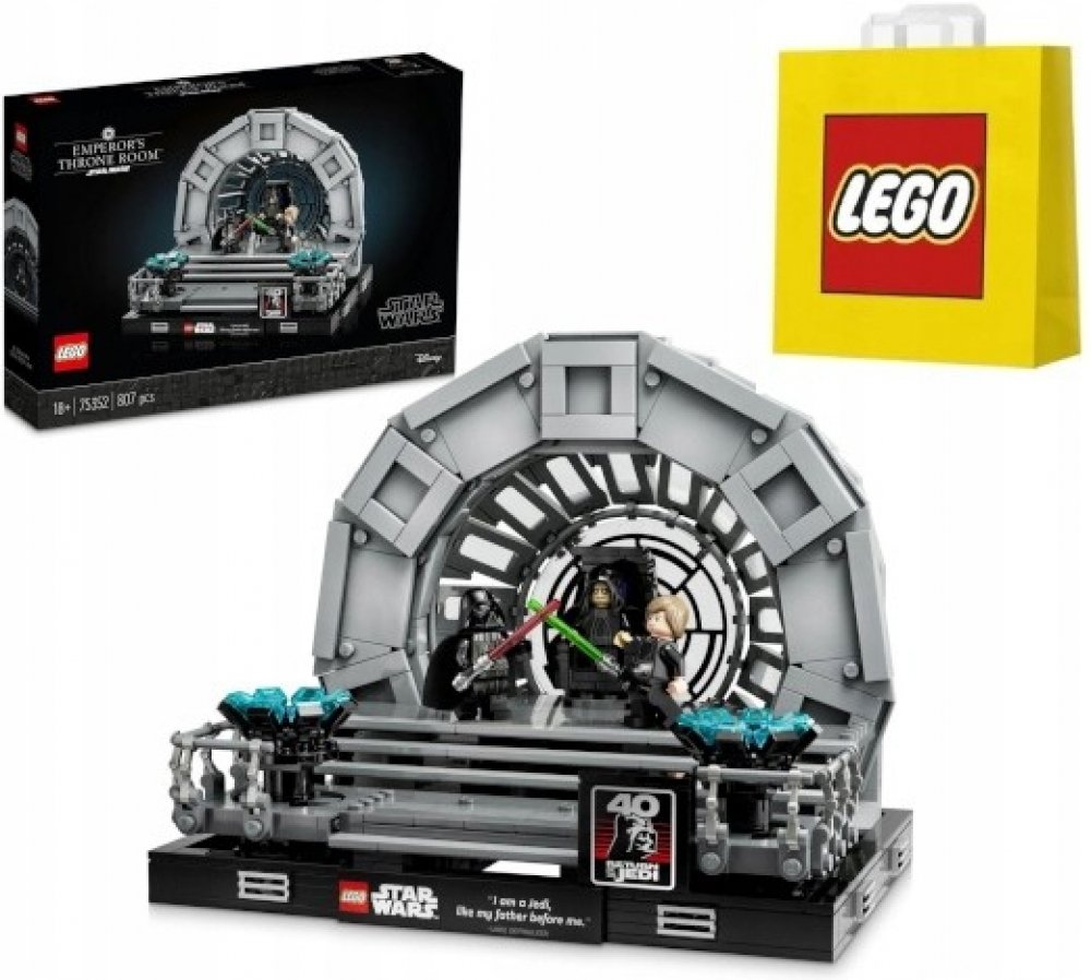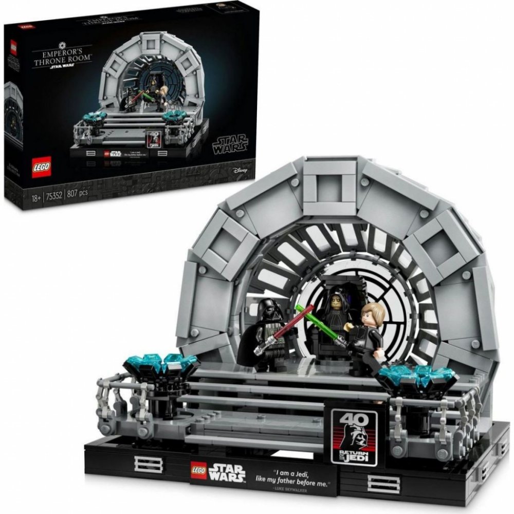 Připomeňte si dramatické vyvrcholení klasické filmové trilogie Star Wars™ se stavebnicí Císařův trůnní sál – diorama (75352). Je plná autentických detailů včetně dílku okna Hvězdy smrti navrženého speciálně pro tuto stavebnici a otáčejícího trůnu císaře Palpatina. Zachyťte akci s LEGO® minifigurkami Darth Vadera a Luka Skywalkera, kteří mají své vlastní světelné meče, a císařem Palpatinem se 2 Sit...