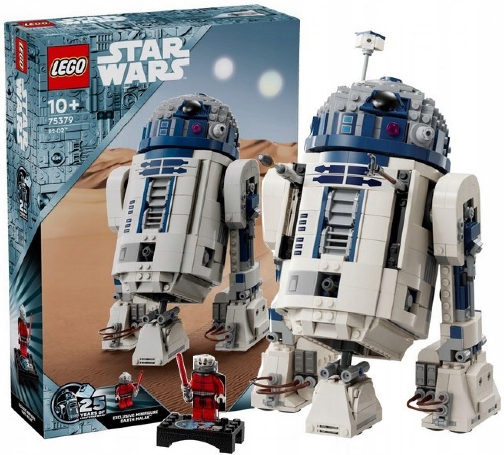 Filmový sběratelský model se skvělými detaily – R2-D2 má otočnou hlavu o 360 stupňů, odnímatelnou třetí nohu pro mobilitu, připojitelný periskop a připojitelné nástroje R2-D2 Figurka droida LEGO® a minifigurka LEGO Star Wars™ – Obsahuje figurku LEGO R2-D2 a minifigurku Dartha Malaka k 25. výročí LEGO Star Wars – Doplňte model o informační plaketu R2-D2 a minifigurku Dartha Malaka stojan s logem 25. výročí LEGO® Star Wars™ Dárek pro fanoušky Star Wars™ ve věku 10 a více let – darujte tuto sběratelskou LEGO® sadu dětem, které jsou fanoušky Hvězdných válek a sběratelé interaktivních digitálních instrukcí Star Wars – v LEGO. V aplikaci ® Builder mohou děti přibližovat, otáčet a vizualizovat digitální verzi stvoření, sledovat váš pokrok a ukládat své sady Sady LEGO® Star Wars™ pro všechny věkové kategorie – sady LEGO Star Wars umožňují dětem i dospělým fanouškům znovu vytvořit ikonické scény, vytvořte si vlastní dobrodružství nebo jednoduše vystavte modely Stavte, vystavujte a hrajte - model R2-D2 v této 1050dílné sadě měří 24 cm na výšku, 16 cm na šířku a 11 cm do hloubky Série: Star Wars