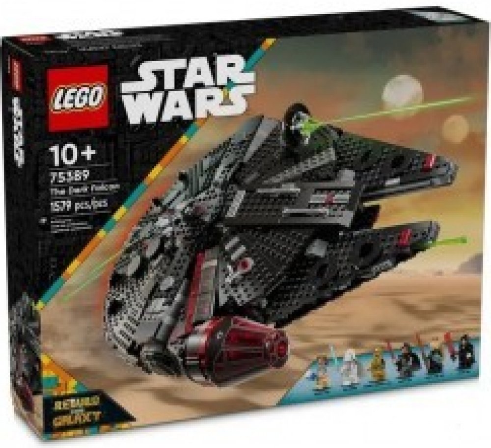 Sestavitelný model úchvatné hvězdné lodi Postavte si model Temný Falcon ze speciálu LEGOR Star Wars: Rebuild the Galaxyt od Disney+ a obraťte galaxii vzhůru nohama. Dárek LEGOR Star Warst pro děti a fandy Star Warst Vytvářejte jedinečné příběhy s postavami ze Star Warst a Millennium Falconem, jak je neznáte. LEGOR Star Warst Temný Falcon Snadný přístup Vyklopte horní panely a hrajte si v propracovaném interiéru. Odnímatelný trůn Posaďte Darth Jar Jara na trůn. Vězeňská cela Pomozte Jedimu Vaderovi zachránit Lukea na pláži z vězeňské cely. Dva pružinové vystřelovače Zamiřte na nepřátele vystřelovači. Odnímatelný kokpit Do kokpitu se vejdou 2 minifigurky LEGOR. 6 minifigurek LEGOR Star Warst Součástí je Luke na pláži, Darth Rey a zábavné doplňky. Nové herní možnosti Objevte další stavebnice z řady LEGOR Star Warst (prodávají se samostatně) pro ještě více zábavných herních možností.
