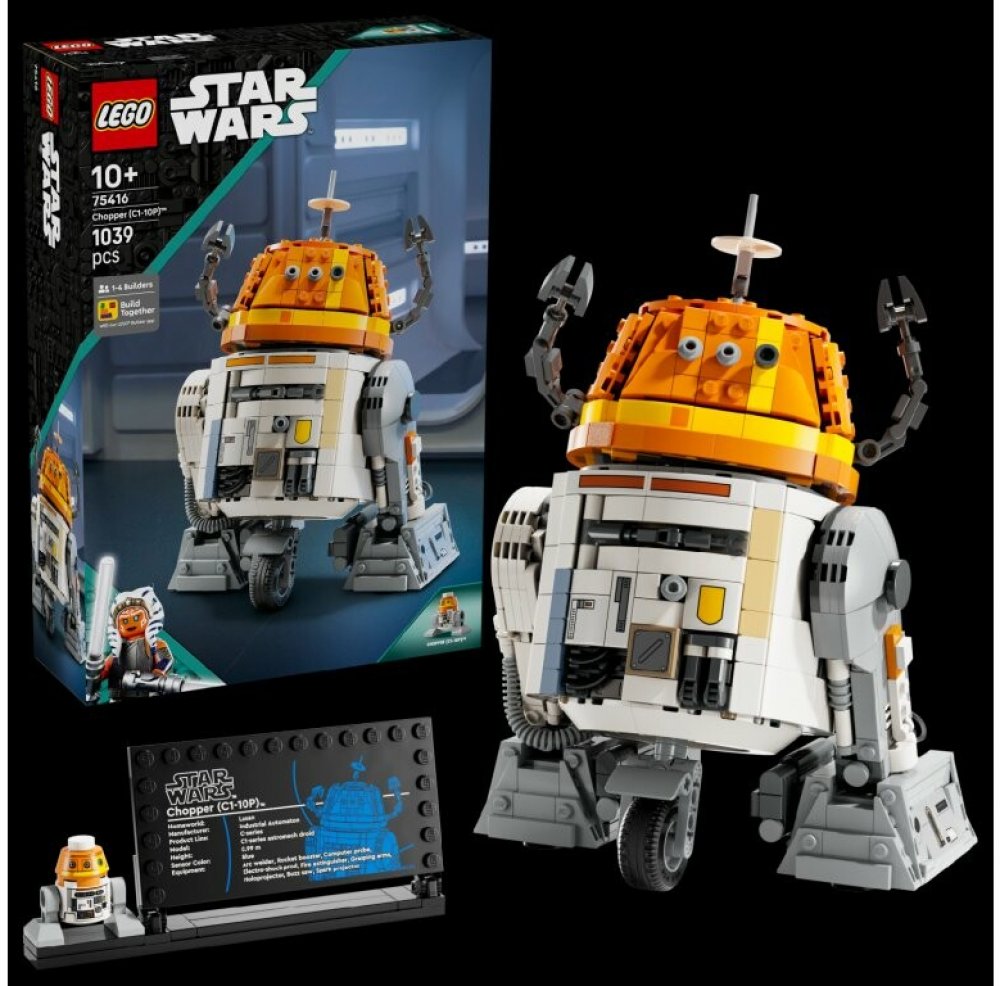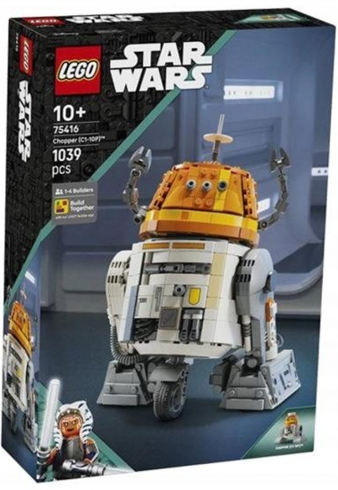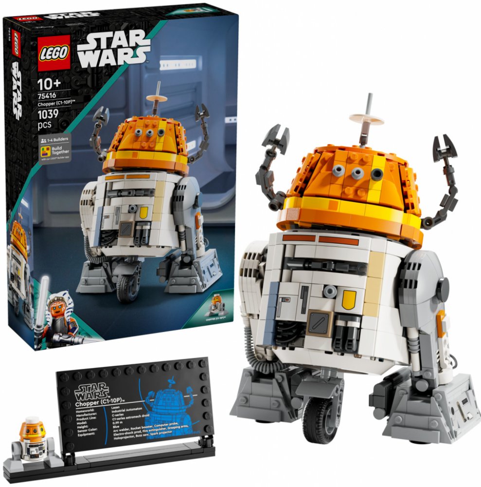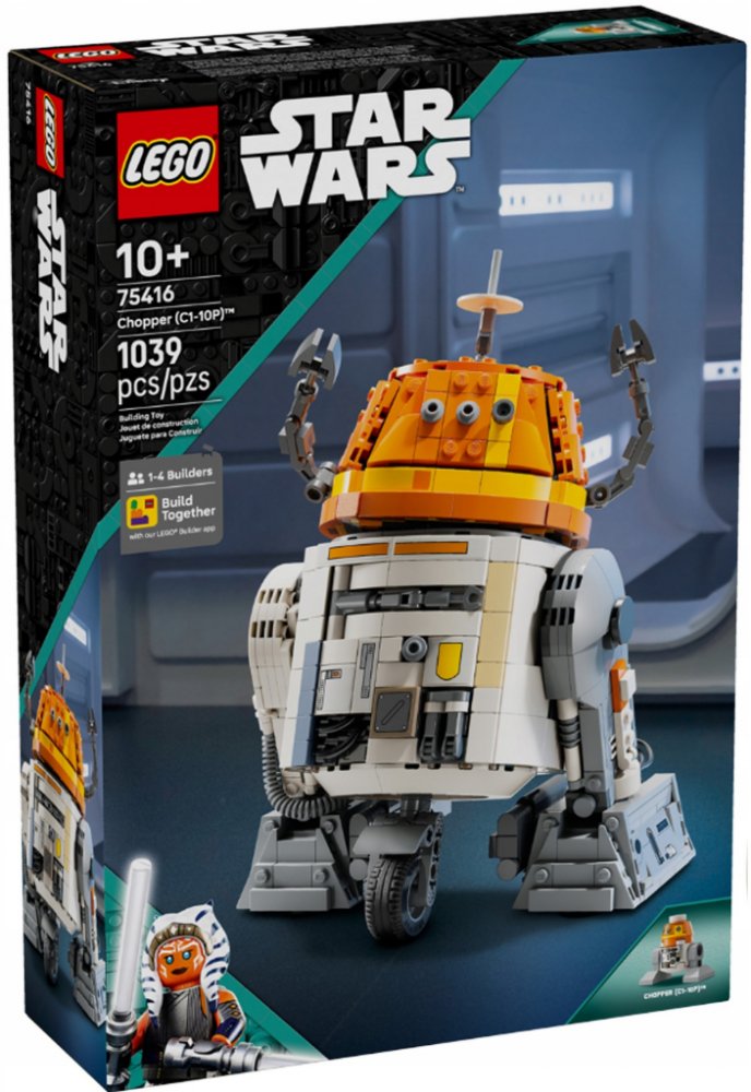 Stavebnice LEGO Star Wars 75416 umožňuje fanouškům sestavit detailní model astromecha Choppera (C1-10P)™ z populárního seriálu Star Wars: Ahsoka™. Model je plně pohyblivý, včetně ikonických pohybů hlavy, a nabízí možnost vystavit ho na stojanu s informačním štítkem.
