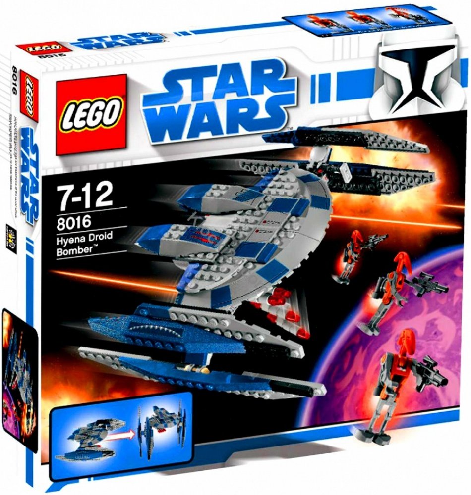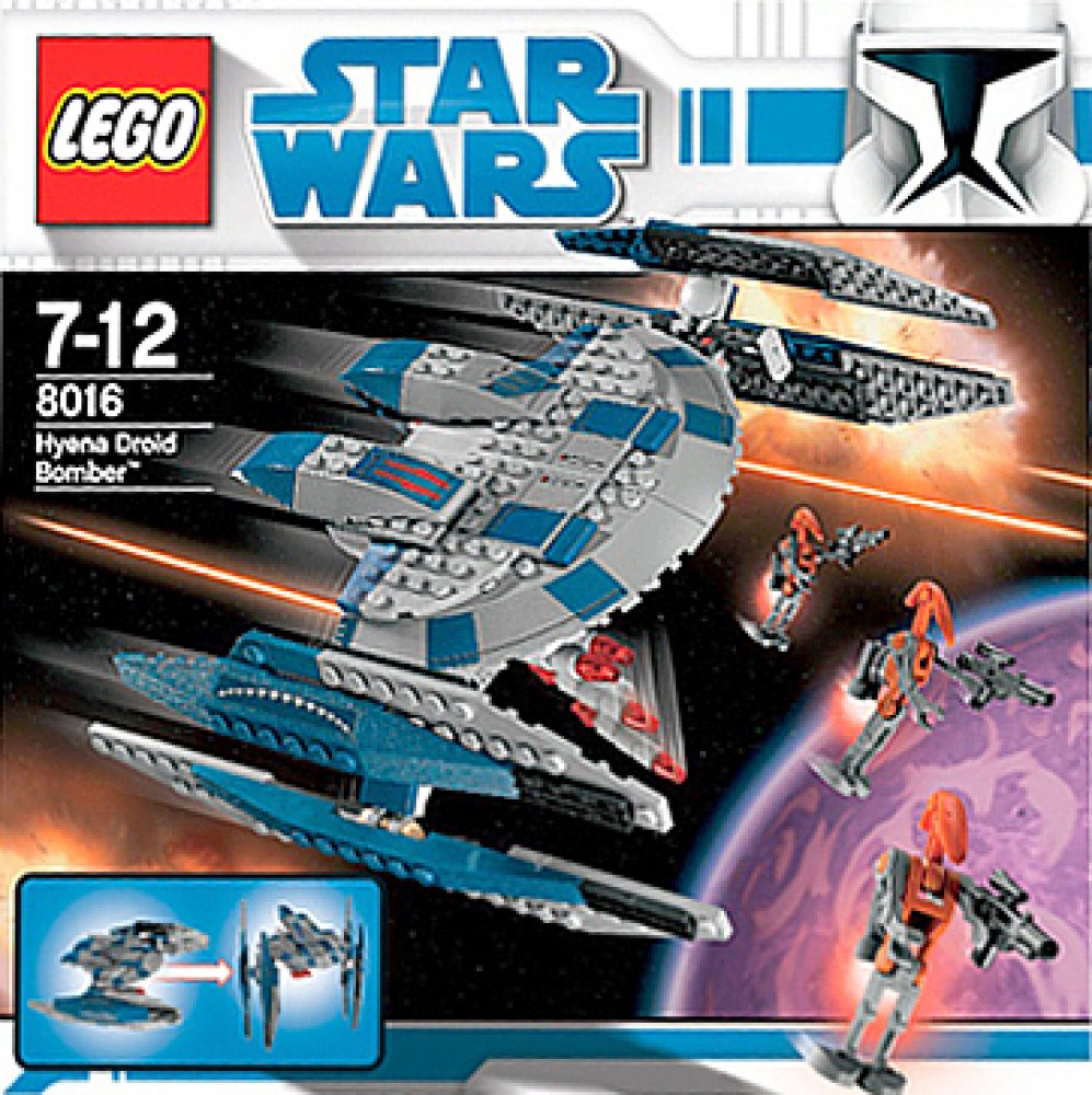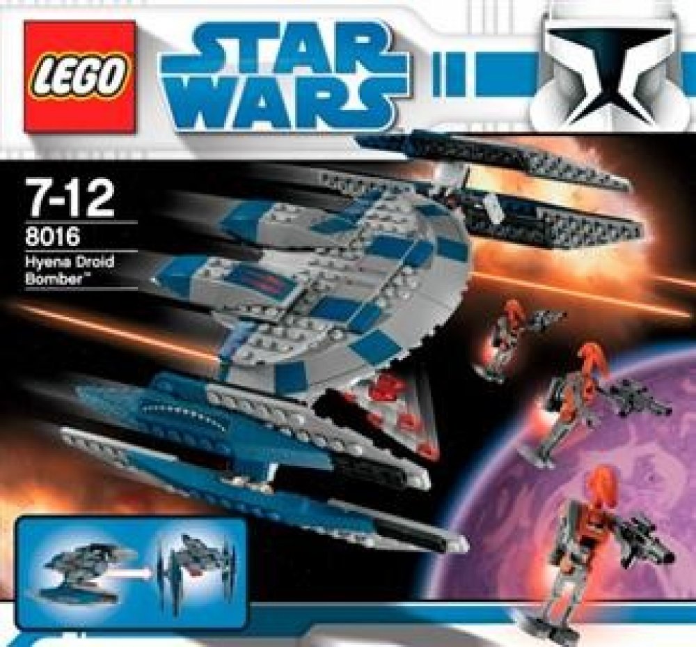 Přepínej mezi módy chůze, bombardování a útoku ke zničení Republiky. Hyena Droid je mocná multifunkční zbraň separatistů, již bylo možné spatřit v epizodě Star Wars: Válka klonů. Součástí jsou čtyři shazovací bomby a tři Lego minifigurky raketových bojových droidů.