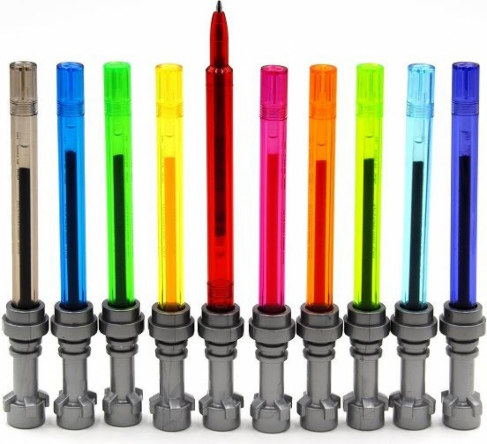Máte rádi na výběr z více per? V tom případě vyzkoušejte gelové pero, jenž se hodí na rychlé poznámky. Gelové pero LEGO Star Wars Set Gelových per, světelný meč - 10 ks využívá gelový inkoust, který je neblednoucí. Tloušťka zanechané linky je 0,7 mm. O toto pero nemusíte mít obavy. Funkce zacvaknutí s uzávěrem zajišťuje, že váš věrný pomocník jen tak fungovat nepřestane. Zásadní funkce pera LEGO S...