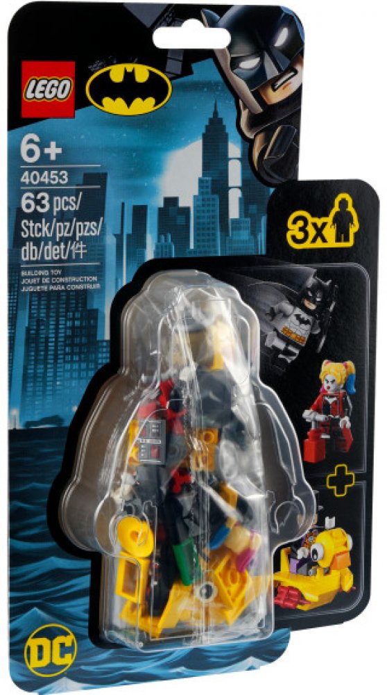 Obsahuje 3 minifigurky – Batmana, Tučňáka se sestavitelným deštníkem a Harley Quinn™ se sestavitelnou palicí.