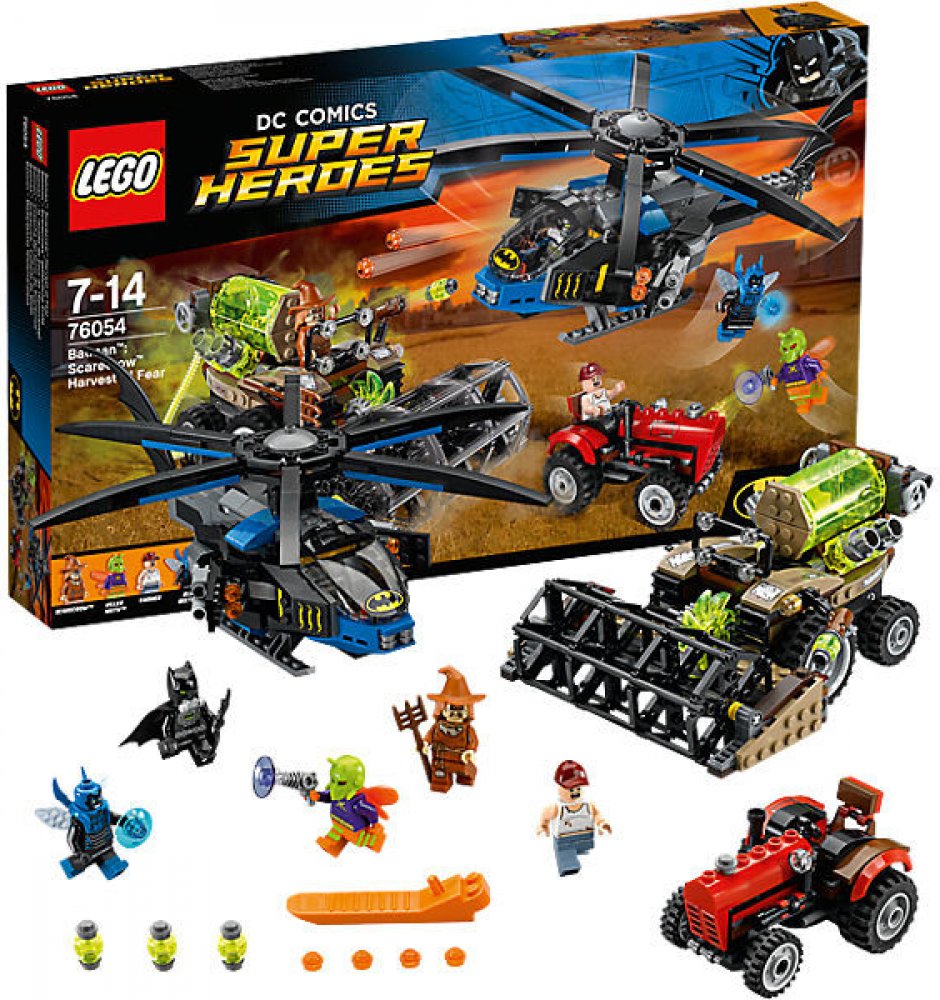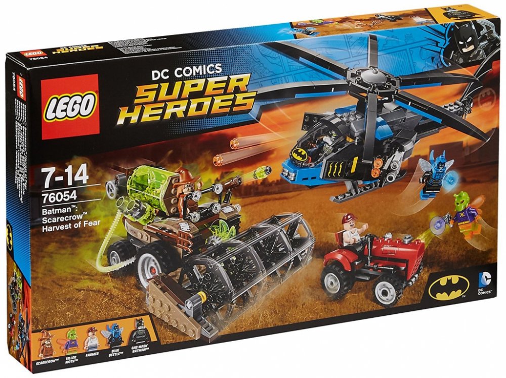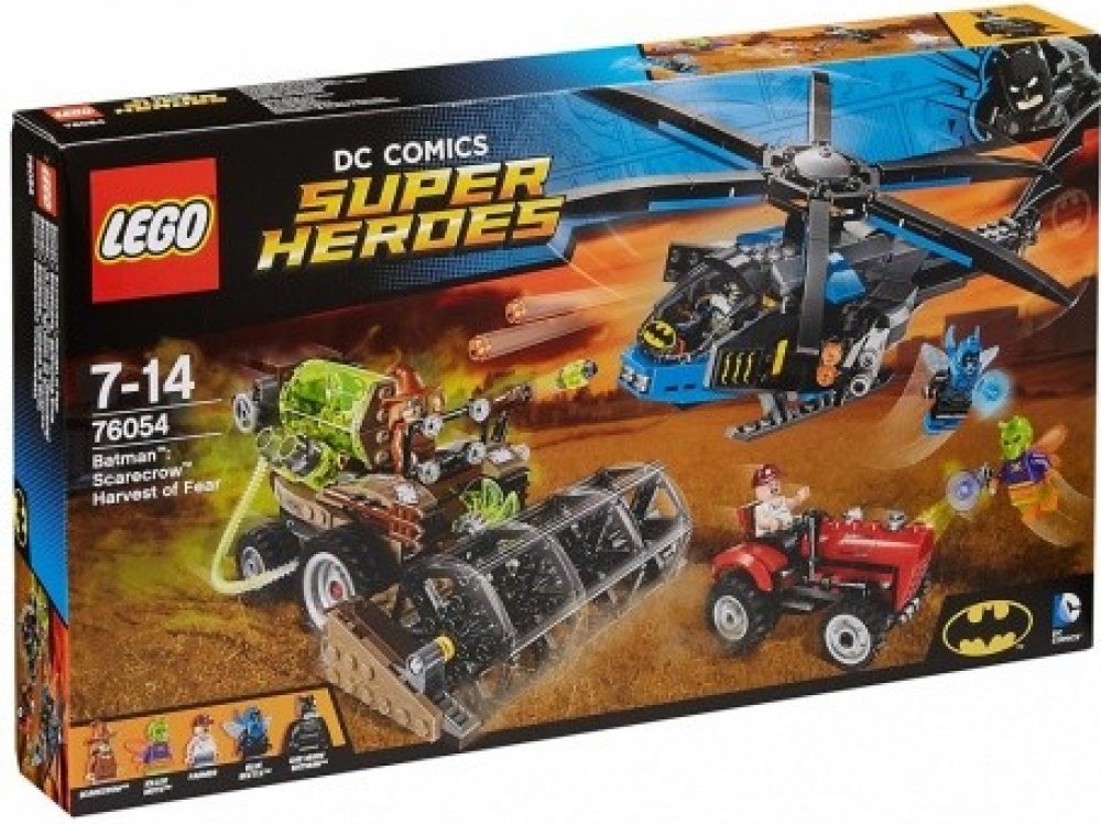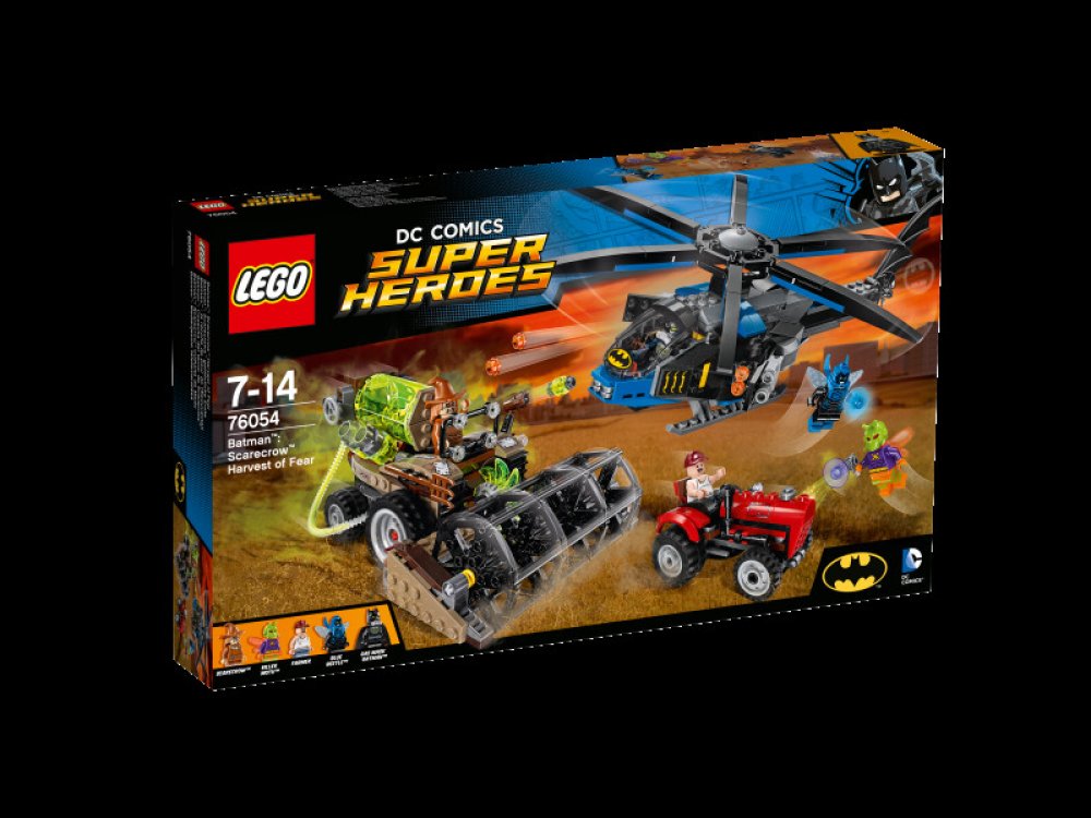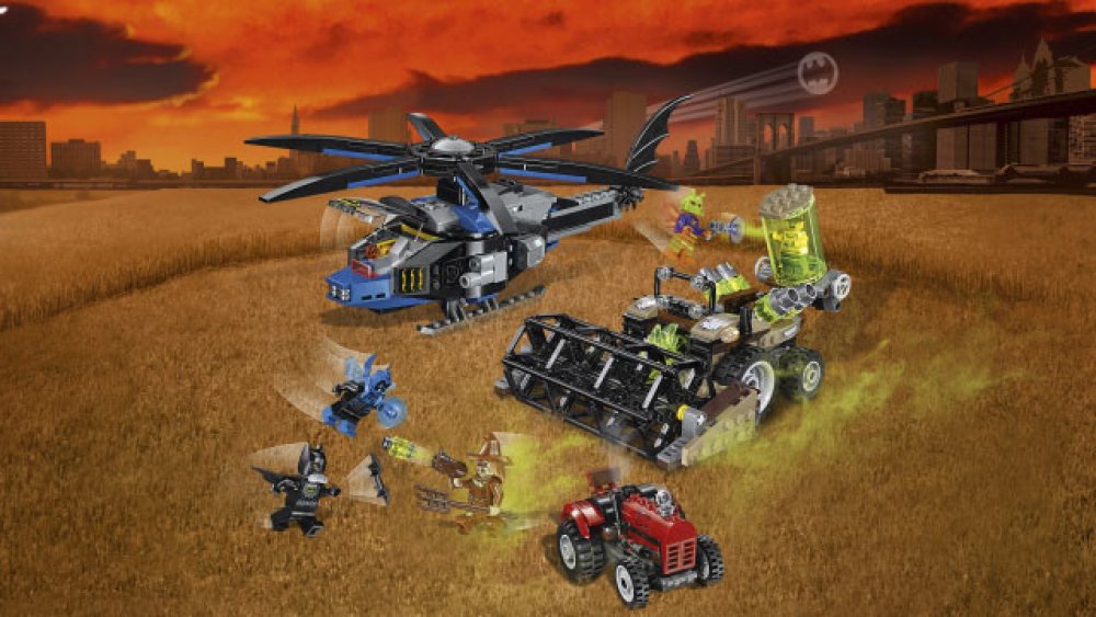 - Součástí je Batmanův Batcopter, Scarecrowův kombajn a farmářův traktor.