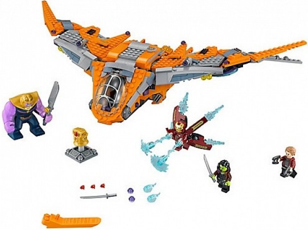 Balení také obsahuje: 3 mini figurky (Iron Man, Gamora a Star-Lord) a 1 velkou figurku Thanose.