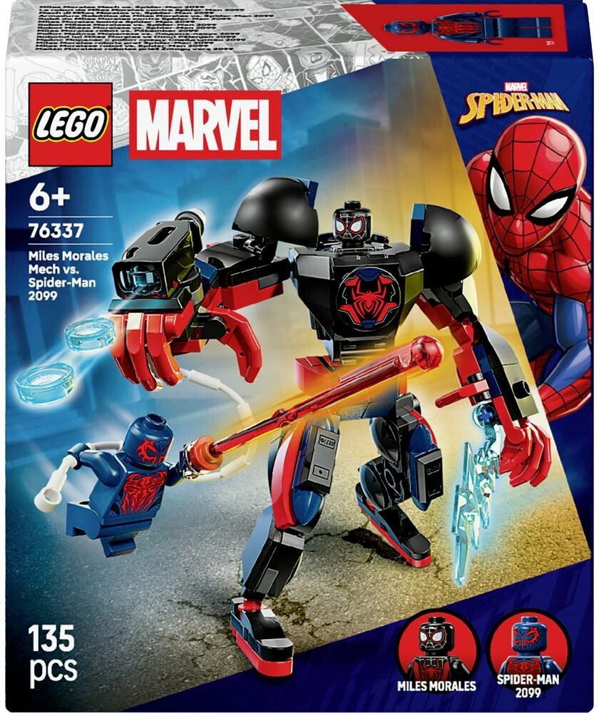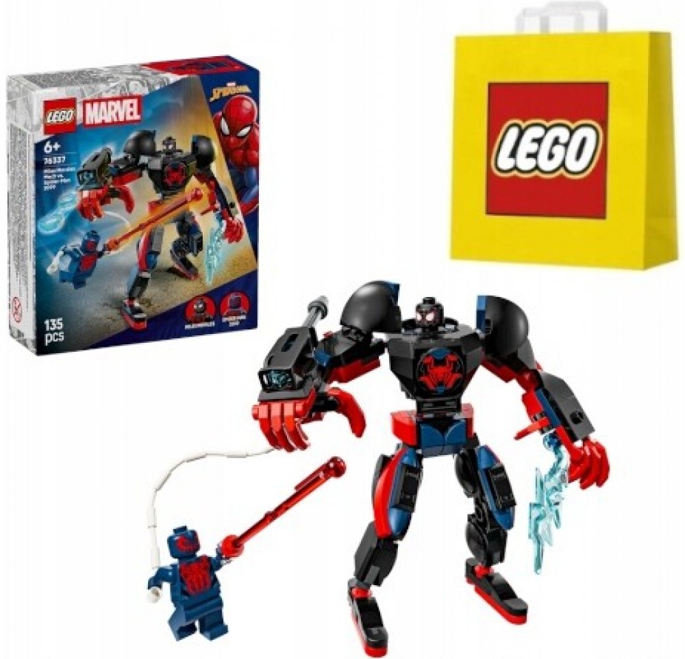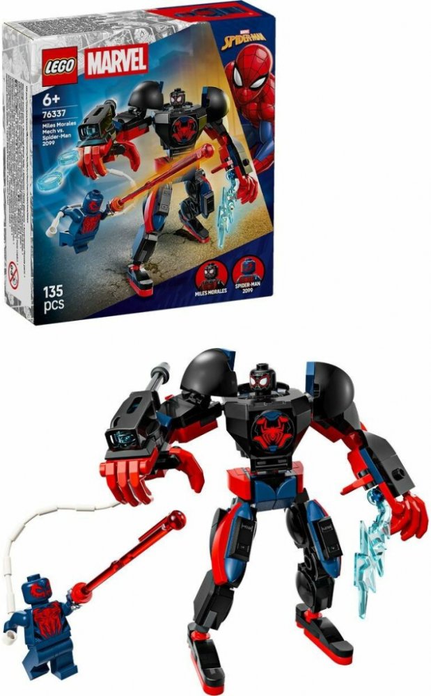 Připomeňte si velkolepé akční souboje z filmů od studia Marvel se superhrdinskou stavebnicí Robot Milese Moralese vs. Spider-Man 2099 pro kluky a holky od 6 let. Tato stavebnice obsahuje velkého pohyblivého robota a minifigurky Spider-Mana a Milese Moralese, které inspirují děti k nekonečnému hraní na hrdiny. Tato stavebnice z řady LEGO Marvel obsahuje pohyblivého robota pro dynamické hraní a děti si s ní připomenou akční scény z filmu Spider-Man: Napříč paralelními světy. Na pažích r obota najdete odnímatelný trojitý vystřelovač, pavučinové lano a ostré výbušné střely, které přinesou nepřetržité akční bitvy. Minifigurka Spider-Mana 2099 se brání ručním laserovým paprskem.