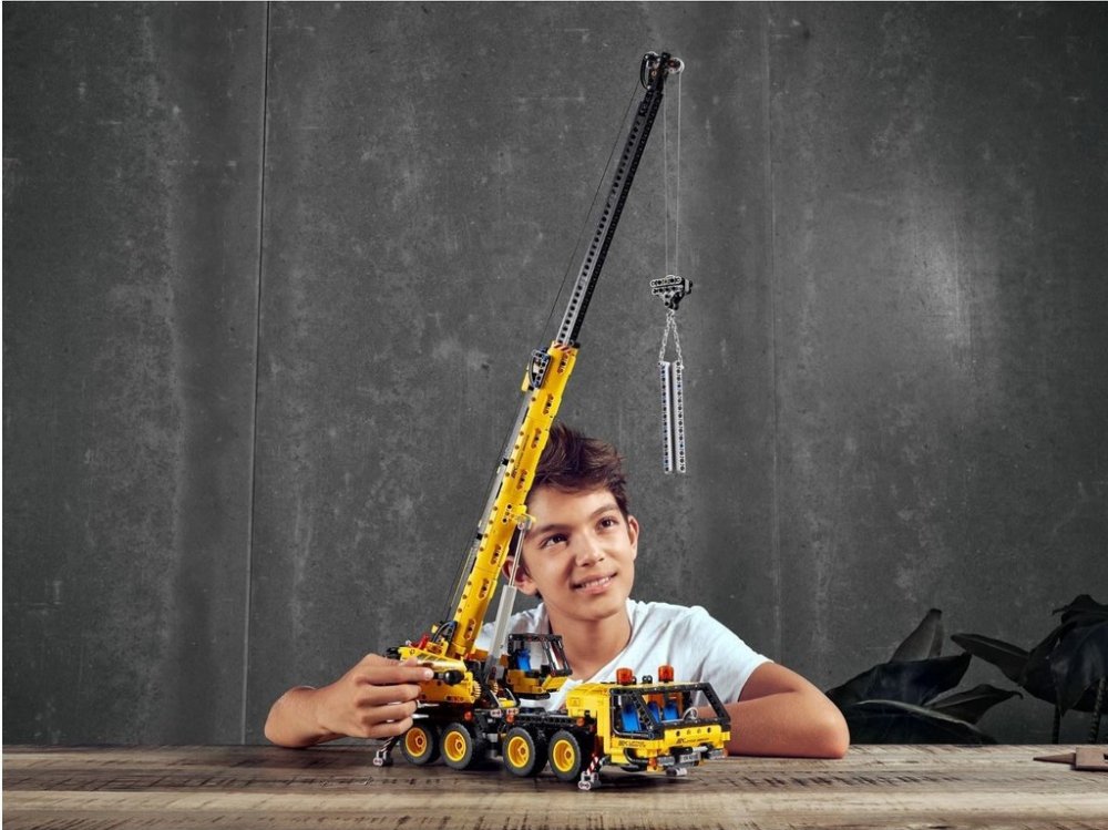 Díky klasické kombinaci černé a žluté barvy se tento model prakticky neliší od své předlohy. Široká řada realistických funkcí je zárukou, že si při jeho ovládání budete připadat, jako byste obsluhovali skutečný jeřáb. Nejprve vozidlem najeďte do vhodné pozice. Poté pomocí bočních vzpěr zajistěte jeřáb ve správné poloze. Z kabiny jeřábu zvedněte a vysuňte teleskopické rameno – schválně, jak vysoko dosáhne! Následně pomocí kladky přeneste betonový sloup – ať už v rámci příběhu, nebo jen tak, abyste si vyzkoušeli, co tento obrovský jeřáb dokáže. Parádní model ze staveniště, který vás vtáhne do děje Tento náročný a pokročilý model ze světa LEGO Technic vás vtáhne do říše stavitelství.