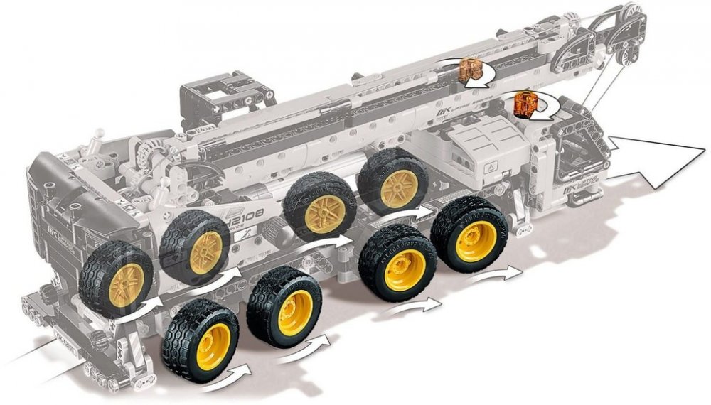 S touto parádní stavebnicí se toho dozvíte spoustu o stavebnictví a mechanice. Řízení 8 kol, 4 jednotlivě ovládané boční vzpěry, 2 kabiny a mimořádně vysoké teleskopické rameno – to vše činí tento jeřáb tak úžasným!