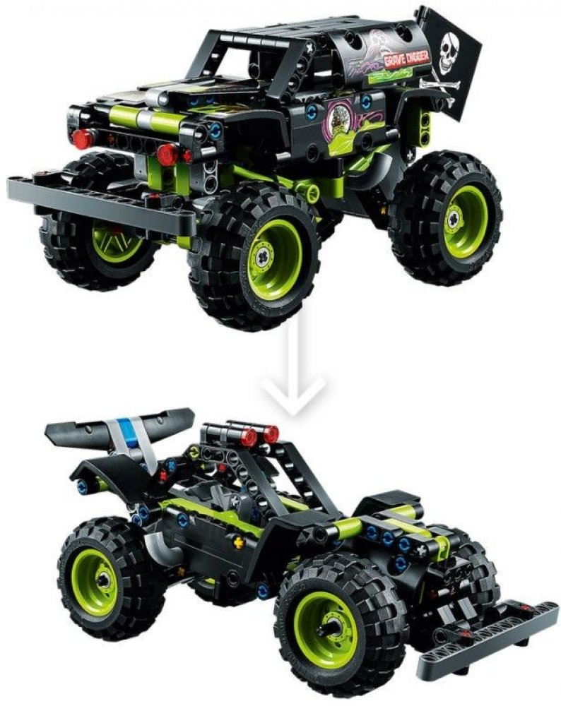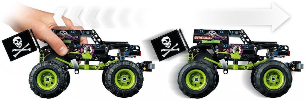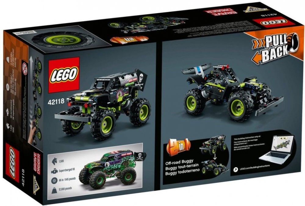 - Dejte svým malým milovníkům monster trucků možnost přehrávat si oblíbené kaskadérské kousky s LEGO® Technic modelem vozu Grave Digger® (42118) ze slavné show Monster Jam®. Autentické prvky zahrnují obrovské pneumatiky, samolepky a spoustu dalšího.