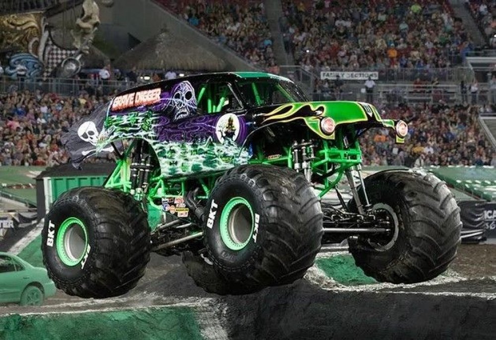 - Skvělé funkce zahrnují ohebnou vlajku, která se pohybuje nahoru a dolů, a červené světlomety – úplně jako na skutečném voze Grave Digger®.
