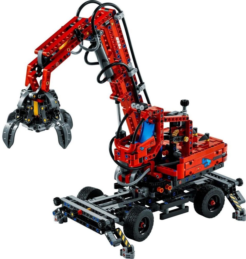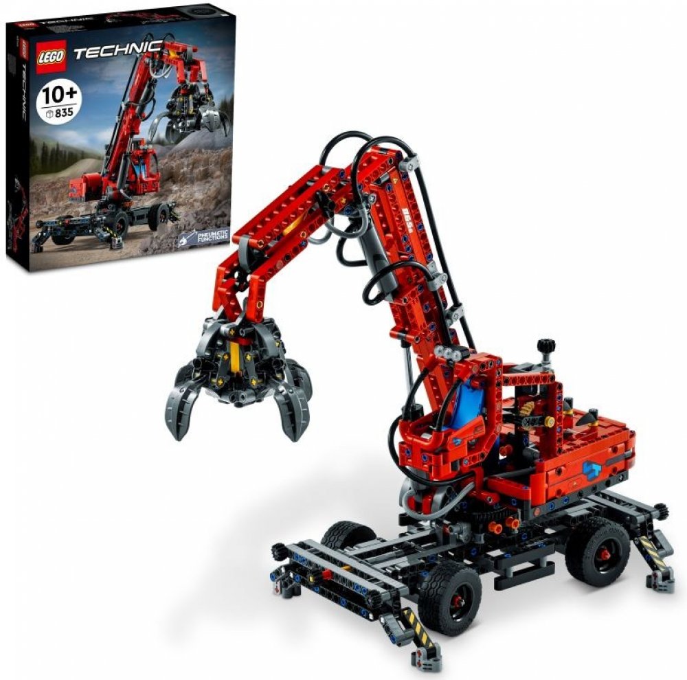 Akční model s pneumatickými funkcemi disponuje pohyblivým ramenem s dosahem přibližně 35 cm a drapákem, který lze otevírat a zavírat. Z manuálních funkcí se mohou stavitelé těšit na otočné horní rameno, jež se pohybuje v rozpětí 360°, výsuvnou kabinu obsluhy a mobilní podvozek s řízením a 4 stabilizačními podpěrami.