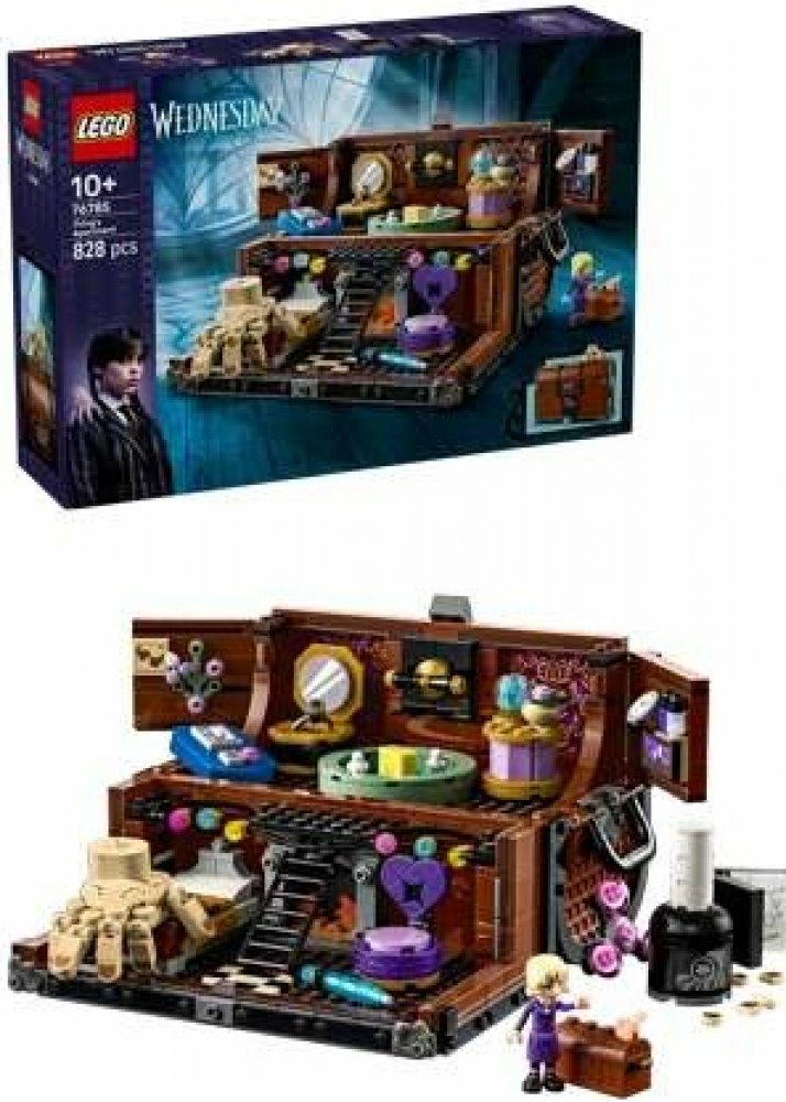 Fanoušky televizního seriálu Wednesday od 10 let čekají hodiny hraní s propracovanou stavebnicí Věc a jeho byt. Tento kreativní model na hraní i na výstavku představuje zábavný dárek k narozeninám pro děti a obsahuje otevírací kufr s postelí, židlí, kloboukem a hodinkami a v horní části kufru najdete prostor na samolepky, lak na nehty, krém na ruce a spoustu dalšího. Nechybí ani pohyblivá figurka Věci a minipanenka Enid. Tato stavebnice představuje chytrý a kreativní dárek k Halloweenu nebo Vánocům pro kluky, holky a fanoušky seriálu Wednesday. Model byl navržen tak, aby potěšil milovníky záhad a dobrodružství a zároveň poslouží jako jedinečný výstavní kousek na stůl nebo na poličku. Objevte další stavebnice LEGO Wednesday (prodávají se samostatně) a užijte si ještě více možností hraní a vystavování. Děti si navíc vychutnají snadné a intuitivní stavitelské dobrodružství s aplikací LEGO Builder, kde můžou přibližovat a otáčet modely ve 3D, ukládat si stavebnice a sledovat postup stavění. Stavebnice obsahuje 828 dílků.