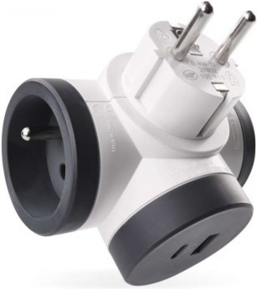 Adaptér s třemi zásuvkami maximalizuje použití jednoho elektrického zásuvky, což je ideální pro místa s omezeným prostorem.