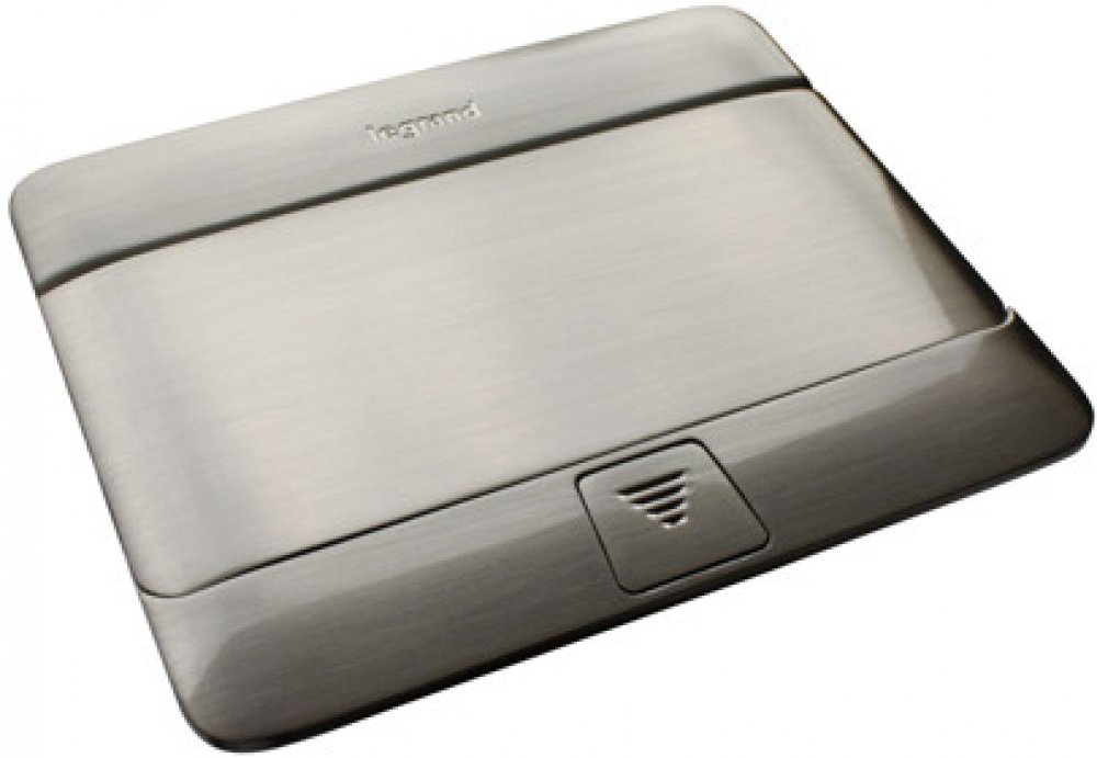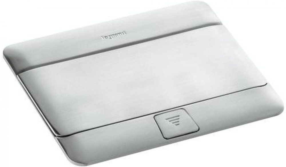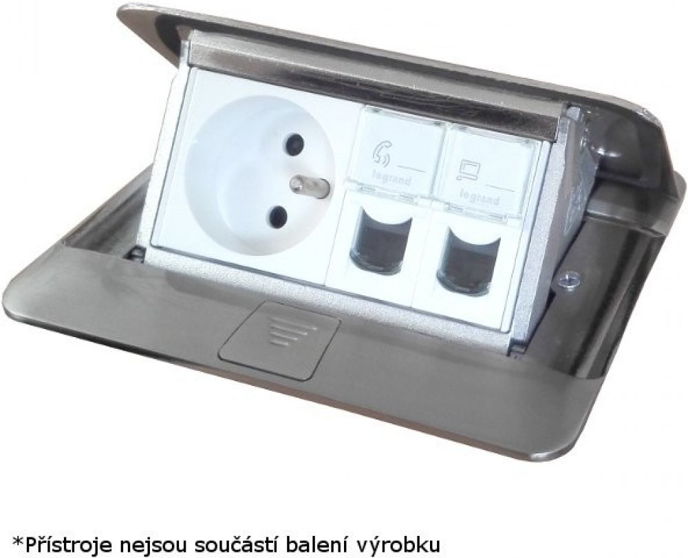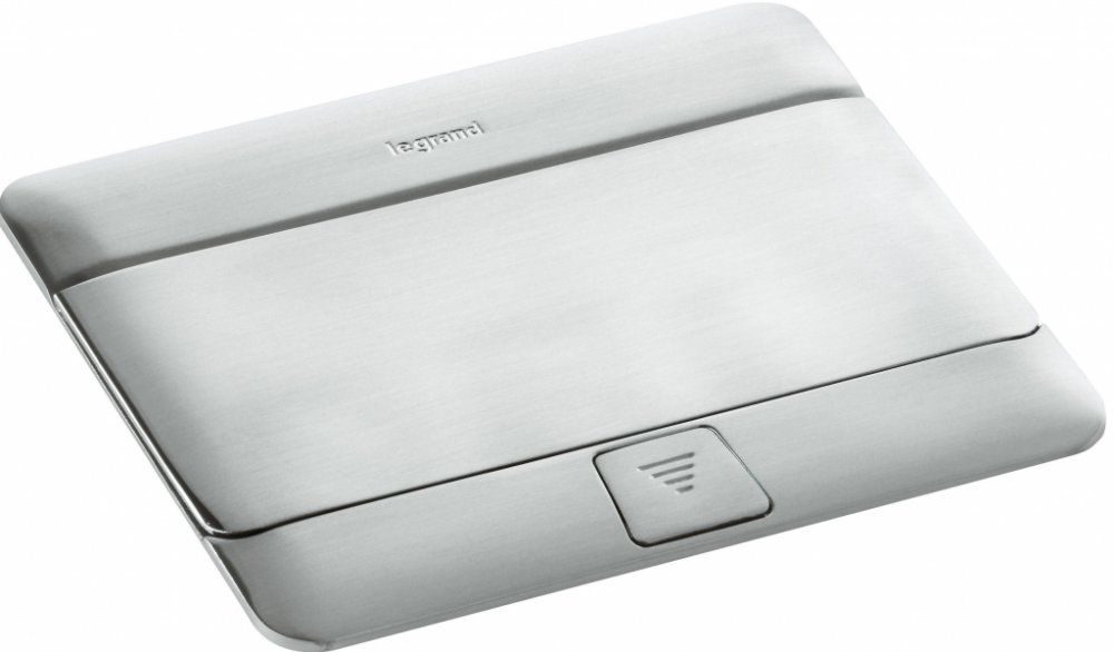 POP-UP krabice do podlahy v provedení broušený nerez a barvě nerezová ocel, vyrobená z hliníku pro vestavnou montáž a určená pro 4 moduly Legrand 054021.