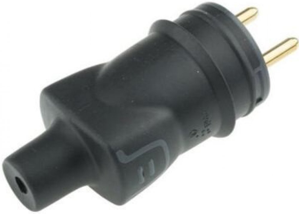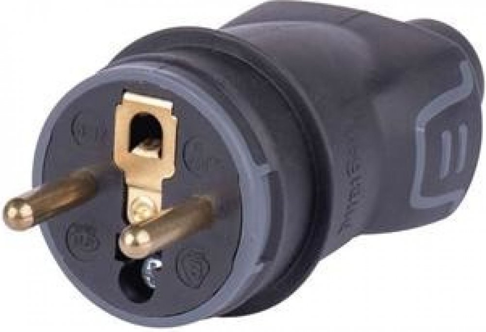 Černá gumová vidlice Legrand je konstruována pro jmenovité napětí 230 V, jmenovitý proud 16 A a pro použití při teplotách -10 až +50°C. Jedná se o přímou vidlici 2P+T a připojíte ji pomocí šroubových svorek. K propojení s třížilovým kabelem (3x2,5 mm) o průměru 13 mm.