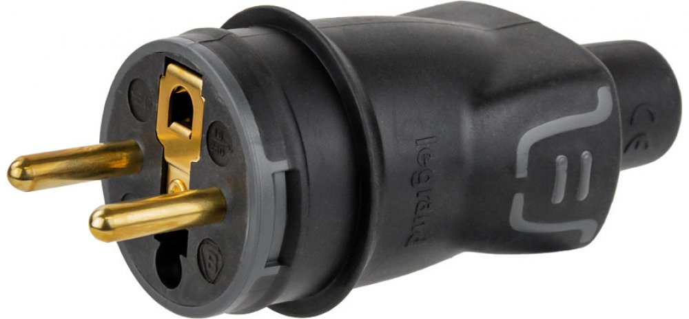 Černá gumová vidlice Legrand je konstruována pro jmenovité napětí 230 V, jmenovitý proud 16 A a pro použ...