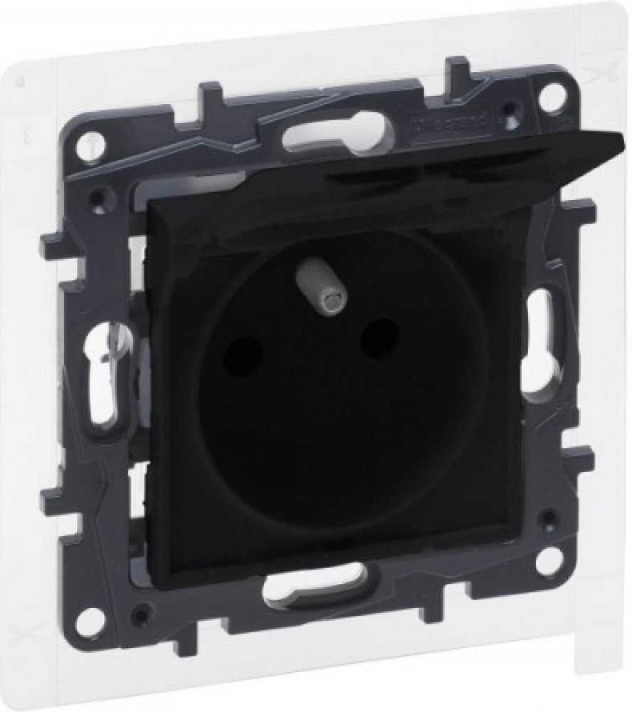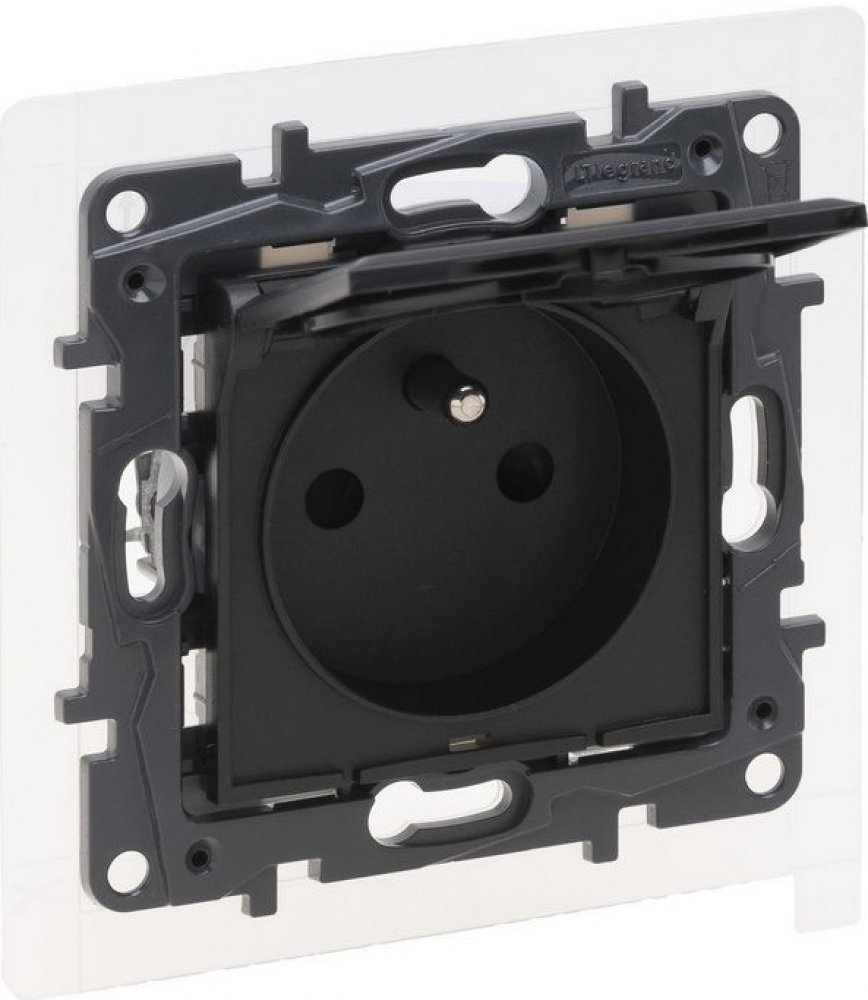 Venkovní zásuvka IP44 s víčkem Legrand Niloé STEP 863536 v černé barvě je moderní zásuvka 2P+PE s clonkami s montáží do elektroinstalační krabice typ 68. Vhodná do vlhkého prostředí (koupelna, sklep) nebo pro venkovní použití. Dodává se bez krycího rámečku, možno dokoupit jednoduchý nebo společný rámeček.