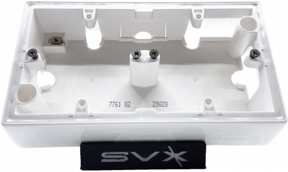 Valena 2 krabice na omítku bíláInstalační krabice Valena na povrch pro všechny běžné mechanismy řady Valena s rámečkem 85x85mm.Parametry:Sestavení: Rám pro povrchovou montážBarva: bíláBez halogenů: anoPočet jednotek: 2Nárazuvzdorný: anoS kabelovou průchodkou: anoS průchodkou kanálu: anoKvalita materiálu: termoplastMateriál: plastSměr montáže: Horizontální a vertikálníKrytí: IP2XProvedení povrchu: ...