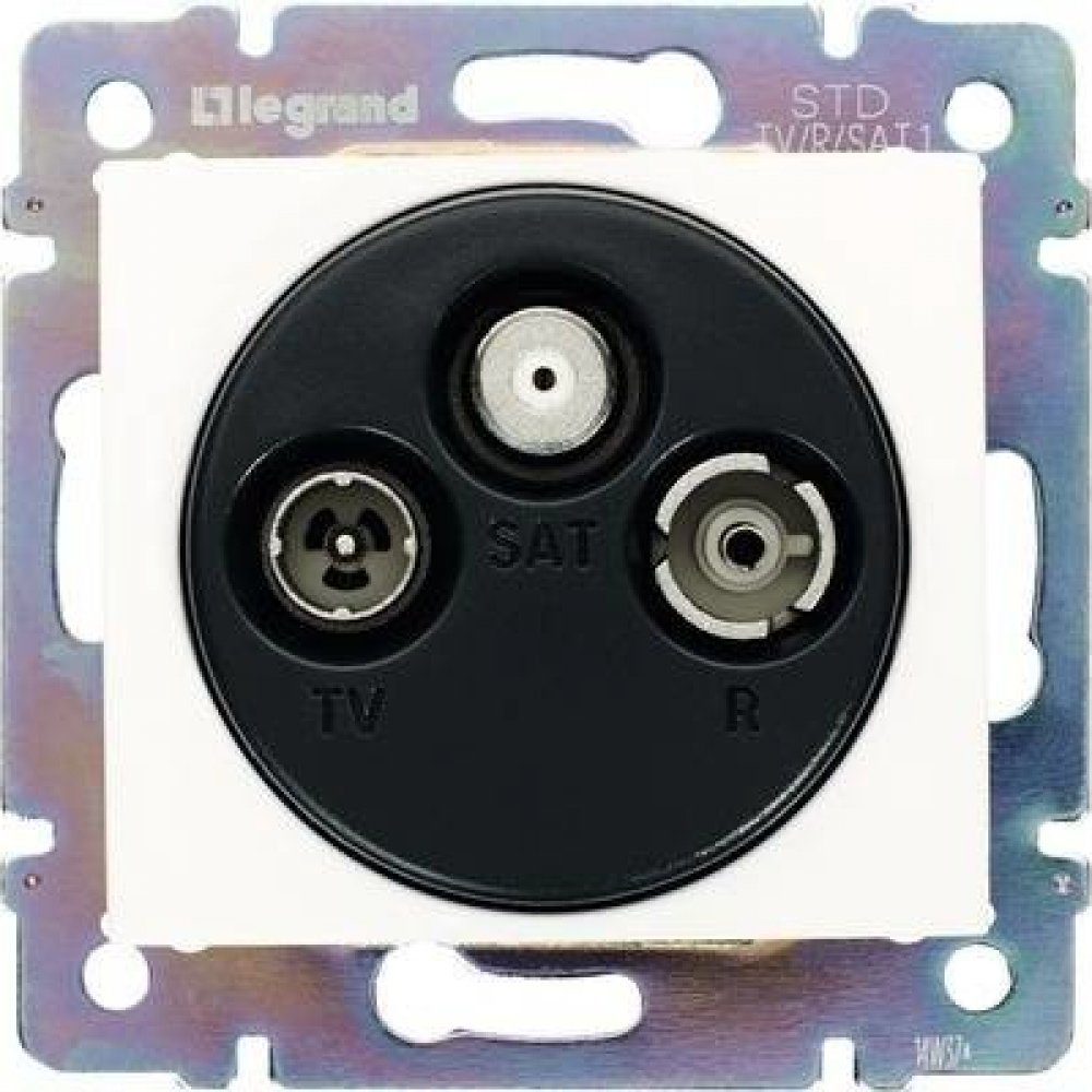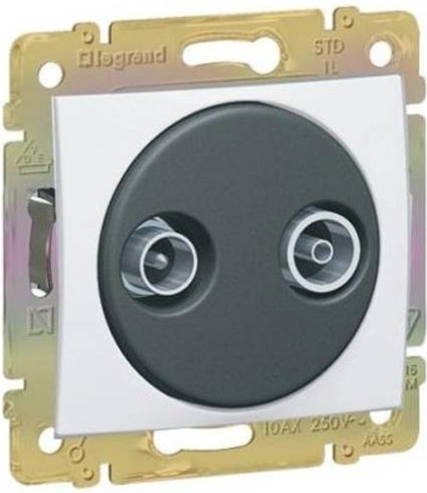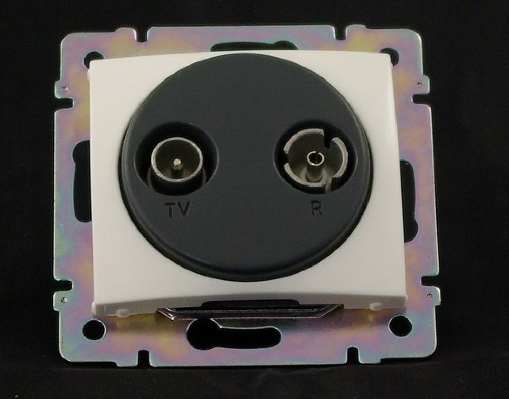 774432 - Zásuvka TV+RD individuální TV-RD zásuvky S automatickými svorkami TV „samec" ? 9,5 mm, 4 – 68 Mhz a 120 – 862 MHz RD „samice" ? 9,5 mm, 87,5 – 108 MHz Individuální instalace (do hvězdy) Útlum 1,5 dB Barva: bílá Mechanismy s kovovou montážní deskou Montáž do přístrojových krabic pomocí šroubů nebo příchytek Dodávané bez rámečku