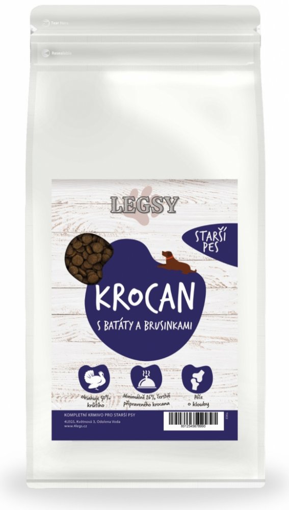 LEGSY pro seniory pro mláďata ve vývinu Krůtí Legsy 2 kg suché Legsy GF Senior 50 % zelenina střední (200-500mg) standardní deklarováno (>40%) standardní podporující (>24%) pasivní (prebiotika) základní