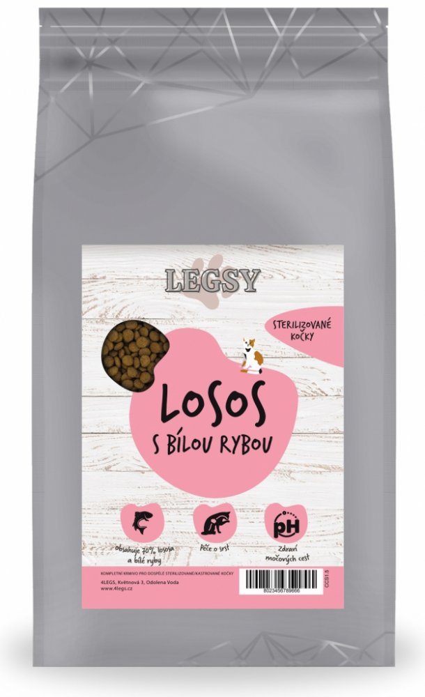 LEGSY Granule pro sterilizované kočky Losos s bílou rybou 1,5 kg