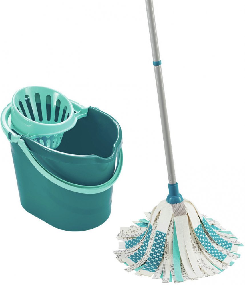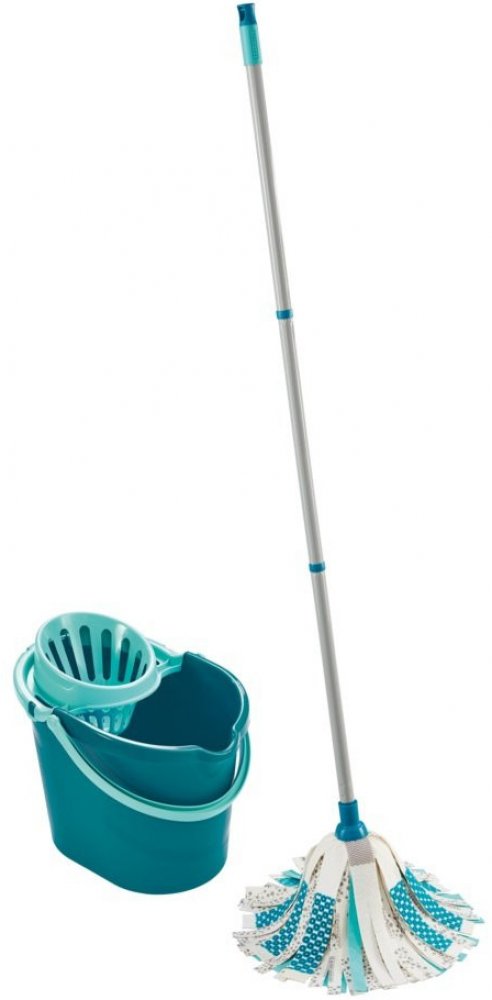 Leifheit Set Power mop 3v1 S univerzálním úklidovým setem Power mop 3v1 máte vytřeno raz dva. V této kompletní sadě zakoupíte vědro včetně ždímacího nástavce a třásňový mop s tleskopickou násadou. Vědro o objemu 12 litrů má z vnitřní strany vyznačenou objemovou stupnici. Díky výliskům ve dně vědra a sklopné ergonomicky tvarované rukojeti se s vědrem snadno manipuluje. Tvar ždímacího nástavce je uzpůsoben tak, aby ždímání třásňového mopu bylo maximálně snadné a účinné. Hlavice mopu je opatřena třemi druhy čistících třásní. Vrchní třásně jsou vyrobeny z vysoce absorbčního mikrovlákna, třásně Pick-up účinně seberou prach, vlasy či chlupy a třásně Power Scrub odstraní všechny odolné a zaschlé nečistoty. Mop se snadno dostane do každého rohu, výborně stírá i schody. Zejména je vhodný pro čištění dlažby a kamenných povrchů. Parametry setu Leifheit Power mop 3v1: materiál: kov / plast / mikrovlákno čištění: stírací třásňové hlavice pratelné v pračce na 60°C (bez aviváže) barva vědra: zelená / tyrkysová barva mopu: šedá / tyrkysová / bílá objem vědra: 12 l hmotnost: 0,95 kg rozměr balení: 29 x 39 x 29 cm (V x Š x H)