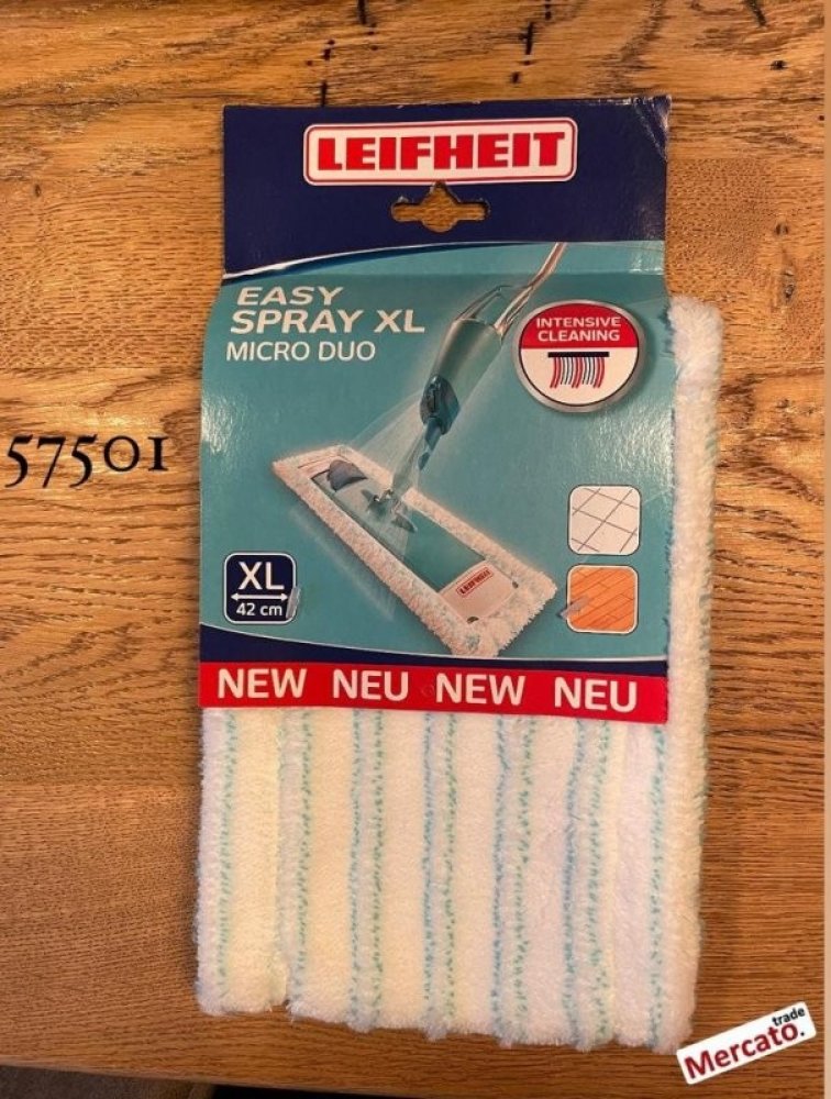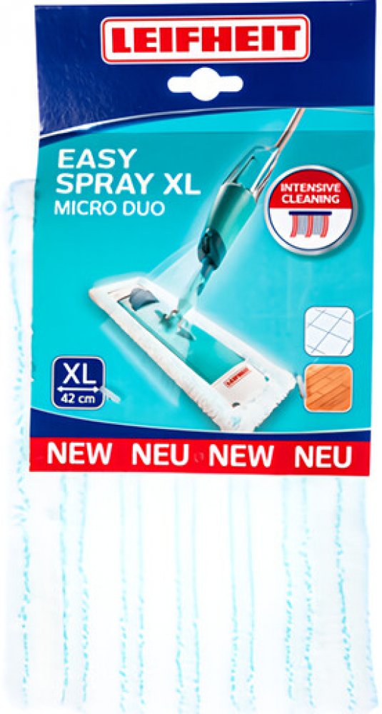 Podložka micro duo pro mop Easy Spray XL značky Leifheit je vyrobena ze savého mikrovlákna. Usnadňuje účinný sběr nečistot a vody. Plní svůj účel a poskytuje 100% spokojenost při používání. Vždy se vyplatí mít jeden v záloze. šířka: 42 cm mikrovlákna a speciální štětiny - vyšší účinnost čištění lze prát v pračce při 60 °C vhodné pro všechny typy podlah Nástavec micro duo pro mop Easy Spray XL značky Leifheit skvěle sbírá nečistoty díky použití dvou typů vláken. O něco delší speciální štětiny odstraní nečistoty z každé spáry a v případě drsných povrchů i z každé prohlubně. Mikrovlákna absorbují veškerou špínu a vodu. Pad micro duo je ideální pro všechny typy podlah, ať už jde o kámen, parkety nebo laminát. Lze ji prát v pračce při 60 °C. Šířka 42 cm. Podložka micro duo pro mop Leifheit Easy Spray XL je vyrobena v Evropě. Jako na spotřební materiál se na něj nevztahuje záruka výrobce.