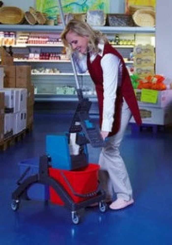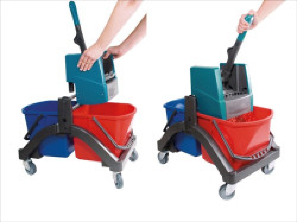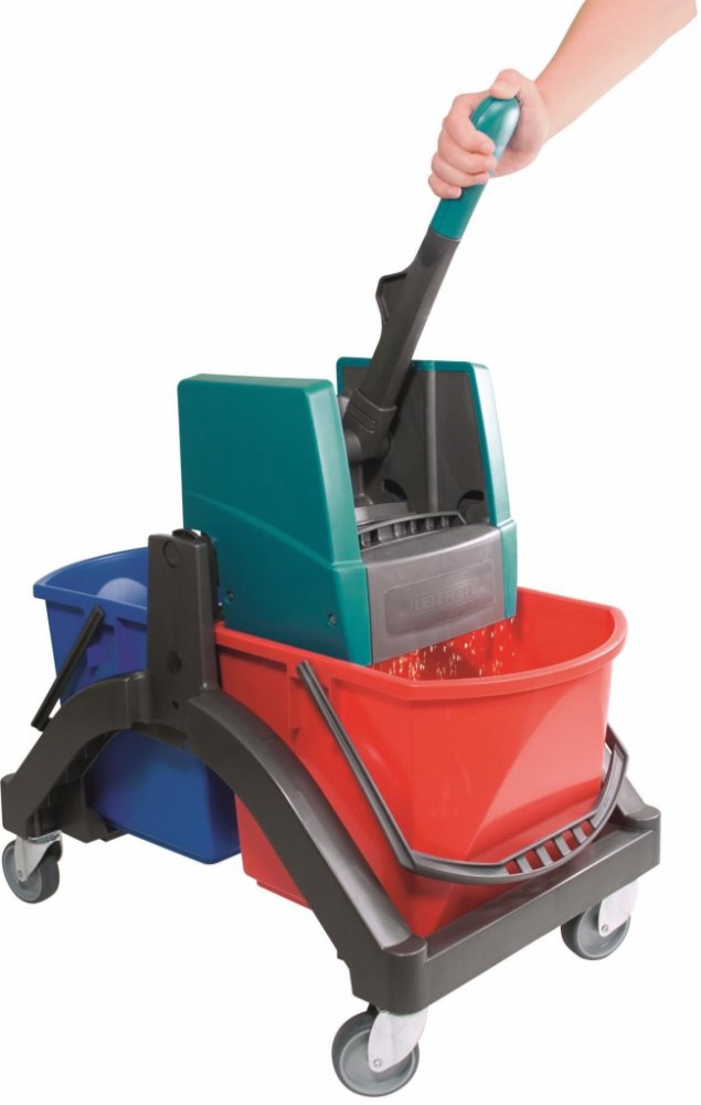 Perfektní základní vybavení pro profesionální čištění podlah v komerčních prostorách. Vytírání s vozíkem Leifheit Professional Duo je maximálně hygienické, neboť ždímání provádíte bez většího úsilí pomocí ruční páky. Vůbec se tak nedostáváte do kontaktu se špinavou vodu a navíc si sami určíte míru vyždímání mopu. Vysoce kvalitní a stabilní čisticí vozík Duo Professional je vybaven dvěma kbelíky, z nichž každá má kapacitu 17 l. Modrý kbelík je určen na čistou vodu, červený na špinavou vodu. Vozík je osazen čtyřmi hladkými 360° válcovými kolečky, díky nimž se jednoduše přesouvá.Leifheit úklidový vozík Professional Duo lze použít v kombinaci s plochým mopem Leifheit Professional (59103) nebo třásňovým mopem Leifheit Professional (59120).