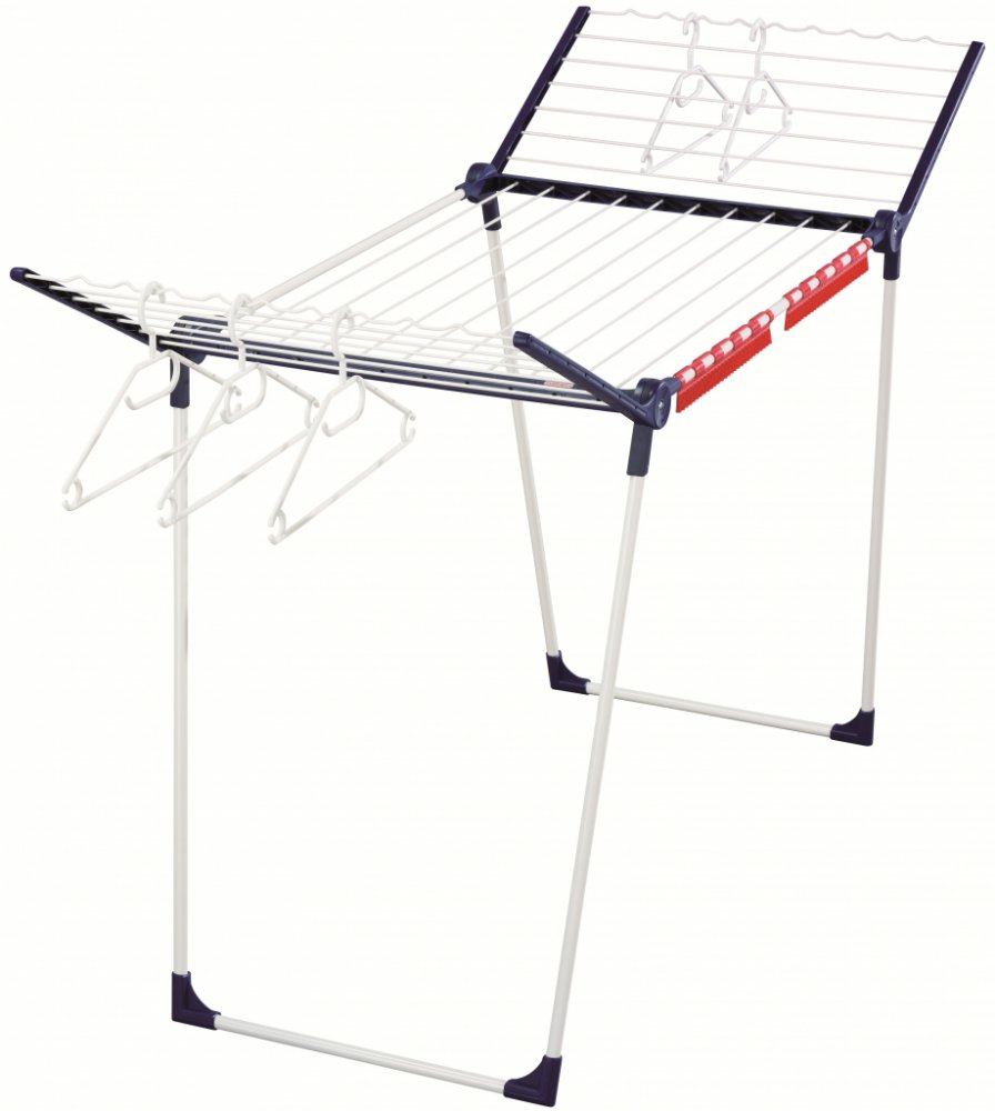 Stabilní sušák s výklopnými bočnicemi a až 20 m sušicí plochy a ndash; ideální řešení i pro dlouhé kusy prádla.