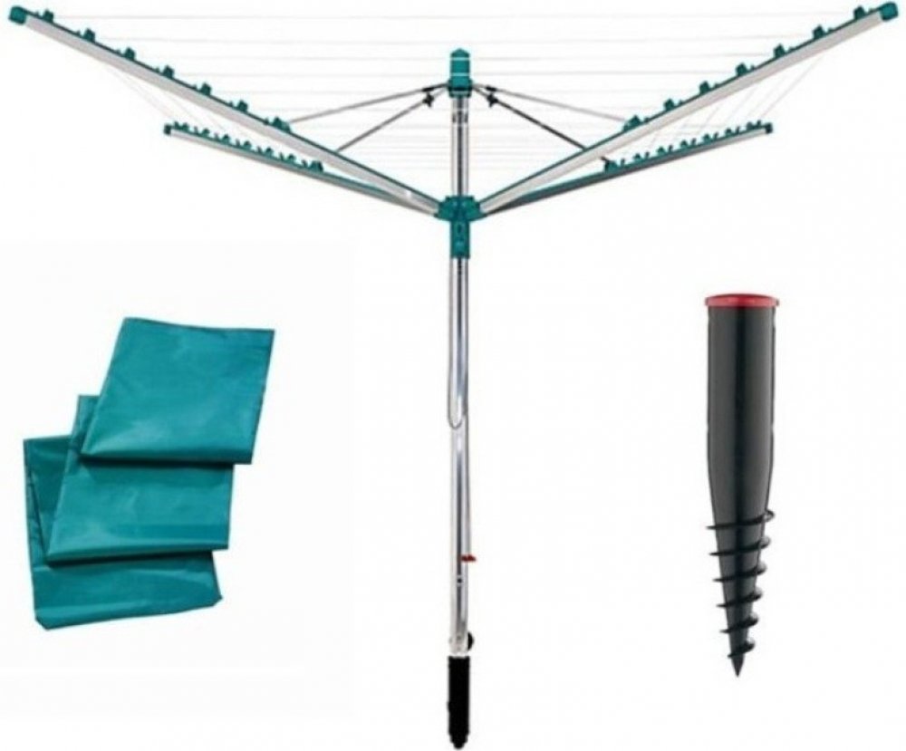 SET zahradního sušáku na prádlo LINOMATIC Easy 400, ukotvovacího držáku a ochranného obalu Zahradní otočný sušák na prádlo LINOMATIC Easy 400 LEIFHEIT 85285 Tento sušák je vylepšenou verzí modelu L400 - model Linomatic Easy 400 má navíc systém Easy-Lift (= super rychlé a jednoduché rozložení sušáku).Při skládání se šňůry automaticky svinou do konstrukce sušáku, a proto je nemusíte před věšením prádla vždy mýt - patentovaný systém.Disponuje mechanismem pro ideální vypnutí šňůr.Na konce ramen sušáku je možno zavěsit ramínka. Sušák výborně odolává povětrnostním podmínkám - nekoroduje, nepodléhá UV záření. Parametry sušáku Leifheit LINOMATIC Easy 400: příslušenství: držák sušáku k trvalému upevnění do betonu k sušáku je možné dokoupit držák na drobné prádlo EasyClip (85650) sušící plocha (délka šňůry): 40 m = 4 pračky vypraného prádla rozměry: délka strany = 1,86 m; rozpětí = 3,03 m materiál: hliník / plast barva: HLINÍK / ZELENÁ Ukotvovací držák pro sušáky na prádlo LINOMATIC LEIFHEIT 85606 Držák je šroubovací přímo do půdy a slouží k ukotvení otočných zahradních sušáků Linomatic. Lze ho však použít i pro jiné sušáky či slunečníky s průměrem nosné tyče do 50 mm. Pro tento případ je držák nově opatřen distančním pouzdrem o průměru otvoru 45 mm, díky kterému dobře drží i sušáky a slunečníky s menším průměrem tyče. Pokud upevňujete sušák na prádlo Linomatic, je nutné toto pouzdro vyjmout. Držák má extrémně odolný krtek a dává sušáku takovou stabilitu, že není potřeba jej betonovat do země. Plastová krytka zabraňuje zatečení vody v nepřítomnosti sušáku. Součástí balení je tyč na zašroubování držáku do země. Paramtery držáku pro sušáky a slunečníky: délka: cca 40 cm materiál: plast barva: ČERNÁ / ČERVENÁ EAN: 4006501856067 Prodloužená záruční doba: 5 let Ochranný obal na zahradní sušák na prádlo LEIFHEIT 85632 Tento univerzální obal je vhodný na všechny otočné zahradní sušáky Leifheit, lze použít i na slunečníky.Obal je mimořádně voděodolný a výborně chrání i proti prachu a nečistotám. Parametry univerzálního obalu na zahradní sušáky a slunečníky: rozměry: 199 x 29,2 cm materiál: textilie barva: ZELENÁ EAN: 4006501856326 Záruční doba: 2 roky