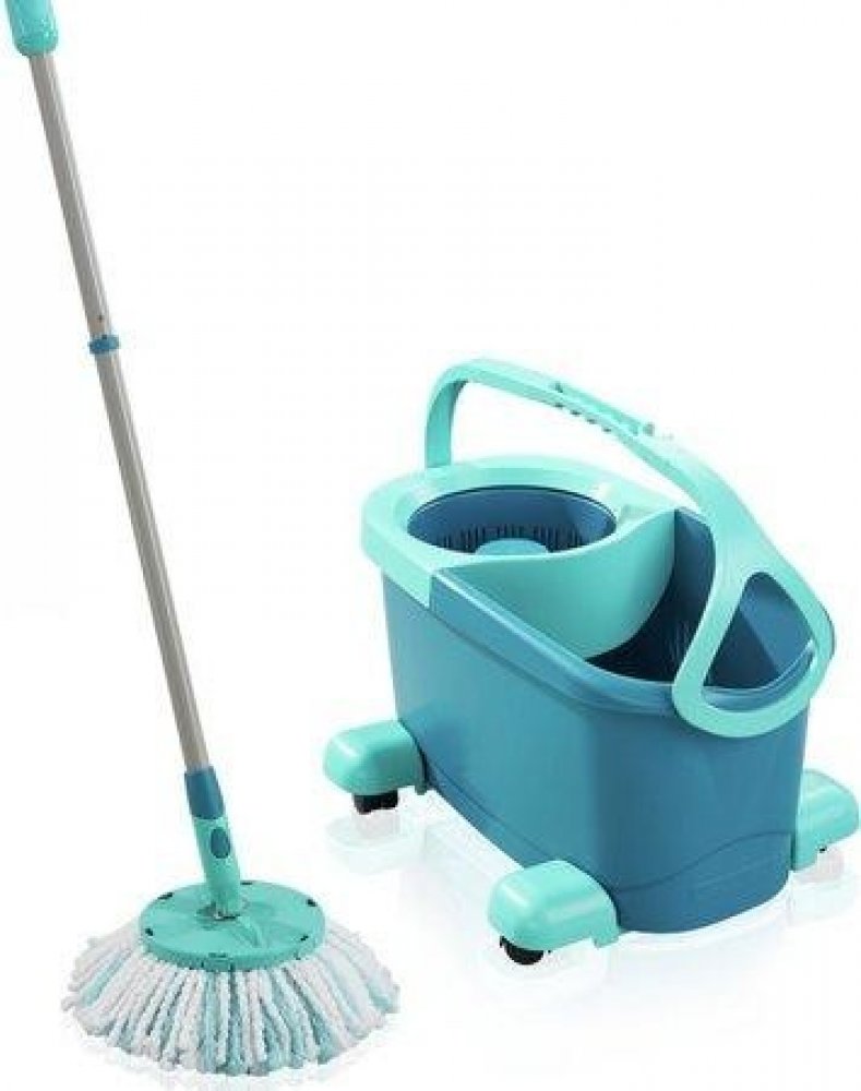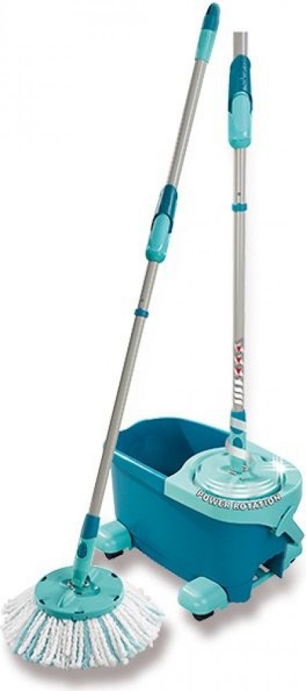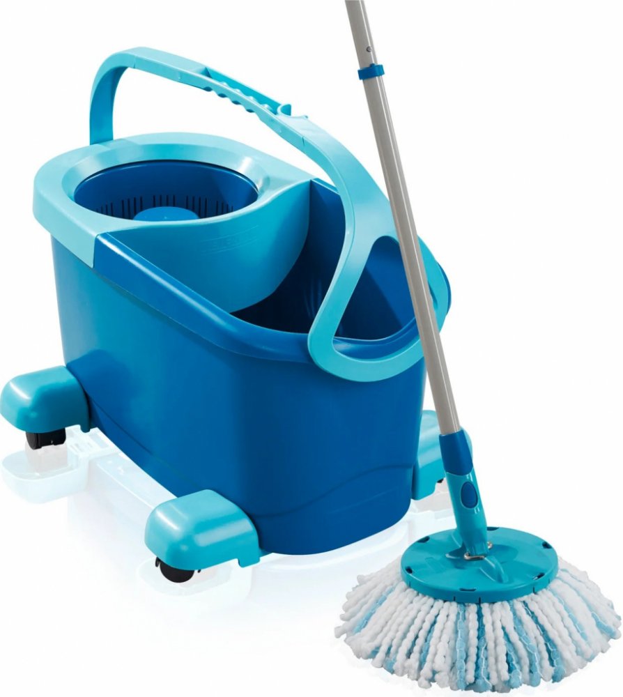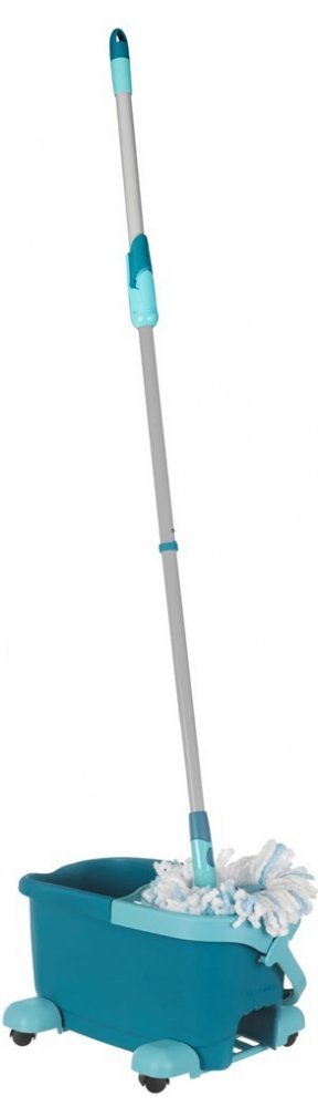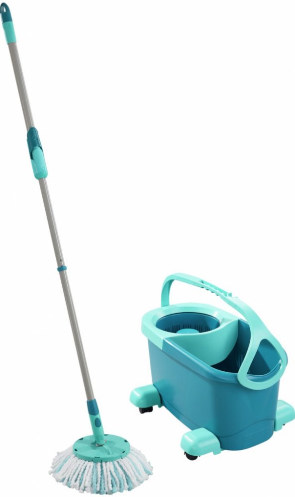 Do vědra napustíte horkou vodu s čistícím prostředkem. Třásně mopu namočíte. Poté mop přesunete do rotační komory, do které hlavice mopu hezky zapadne. Odjistíte tyrkysovou páčku v násadě mopu a opakovanými pohyby násady dolů a nahoru rotační komoru roztočíte. Zatlačením násady dolů proti rotační komoře pak ždímání snadno zastavíte. Poté tyrkysovou páčku opět zajistíte a mop je připraven k úklidu. Úroveň vyždímání volíte podle typu stírané podlahy. Čím déle komora rotuje, tím jsou třásně sušší. Úklidová sada CLEAN TWIST Disc Mop Ergo Mobile obsahuje: třásňový mop s rotací v násadě