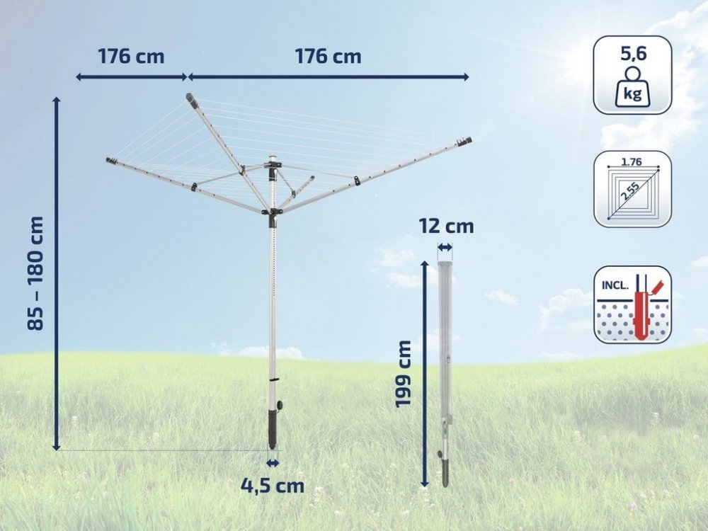 176 cm 176 cm ocelové 5 šedé venkovní Leifheit 180 cm