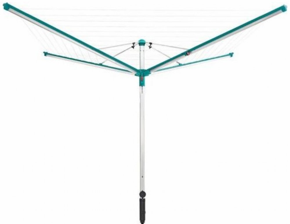 Venkovní sušák na prádlo Linomatic 600 Deluxe Cover od Leifheit nabízí 60 m sušící plochy. Je odolný vůči počasí, nerezavějící a vyrobený z hliníku. Patentovaný systém chrání šňůry před deštěm a špínou. Díky Easy-Lift systému se snadno otevírá a zavírá. Obsahuje dva otvory pro ramínka na každém rameni a pojme až 6 praček prádla. Součástí je plastový držák k zabetonování.