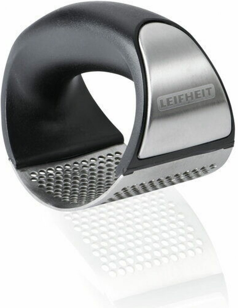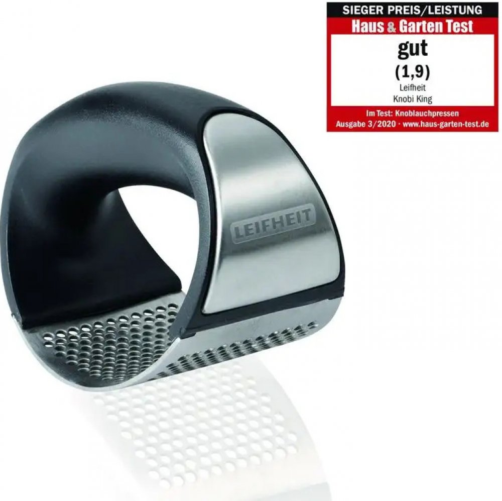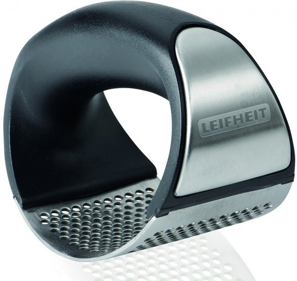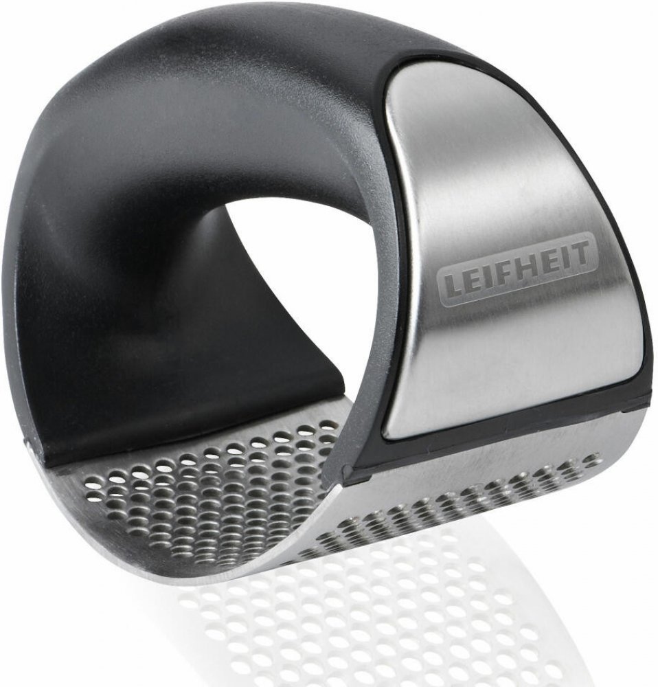 inovace v lisování česneku, díky ostrým hranám děr lisu je česnek nařezán a ne rozdrcen, čímž je zachována jeho chuť a aroma, moderní design dotváří kombinace nerezavějící ocele s vysoce kvalitním pl