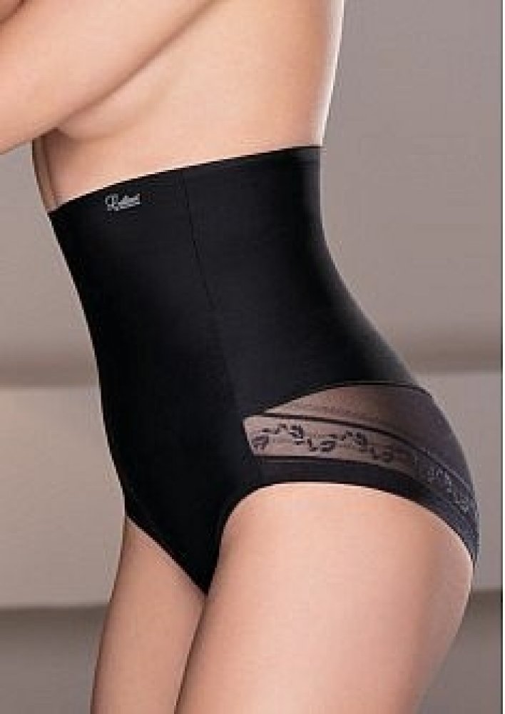 Vysoké kalhotky klasického střihu jsou v přední části hladké a její zadní část je kombinovaná hladkou elastickou látkou a jemně pružným elastickým tylem.