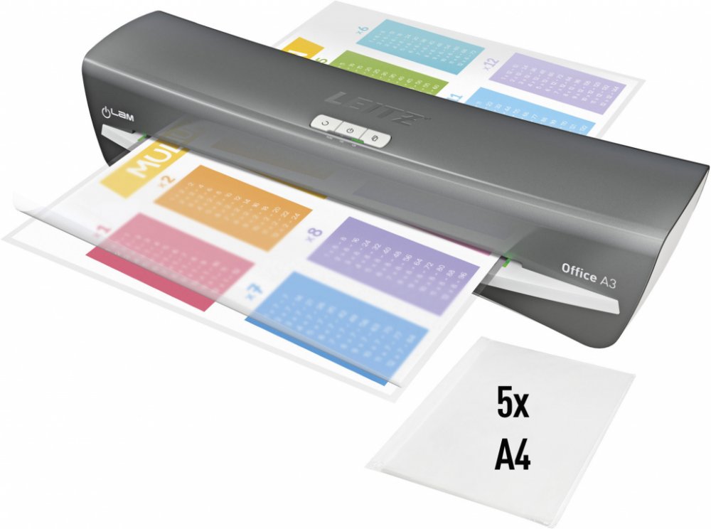 Laminovací stroj Leitz iLAM Office A3 zajistí rychlou a snadnou ochranu dokumentů díky bezproblémové laminaci. Nabízí rychlé zahřátí za 1 minutu a dokáže zalaminovat dokument A3 v laminovací kapse o tloušťce 80 mikronů za pouhých 36 sekund.