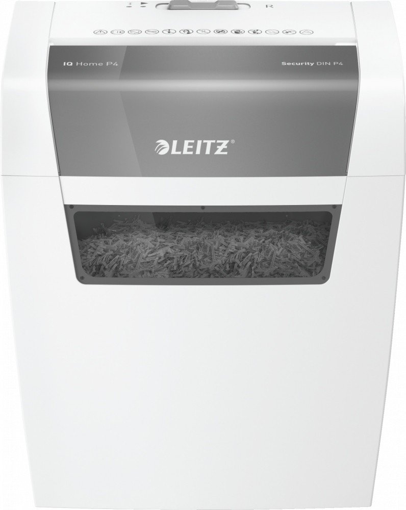 Kompaktní rozměr pro snadné umístění, ideální pro domácnost a domácí kanceláře. Vneste styl do své pracovny s tímto tichým skartovačem.. . Skartace až 6 listů A4 (80 g/m2) najednou. Křížový řez (bezpečnostní úroveň DIN P-4). Odpadní nádoba s kapacitou 15 l (125 listů A4). Tichý provoz skartovače (při pravidelném používání olejovacích listů Leitz). Skartuje také sponky a kancelářské svorky. Doba nepřetržitého provozu 3 minuty. Rozměr: 325 x 343 x 229 mm (š x v x h). Hmotnost: 3,5 kg. Barva: bílá. . Kontaktní informace výrobce/prvního distributora v EU:. LEITZ ACCO Brands GmbH & Co KG. Siemensstr. 64, D-70469 Stuttgart, Germany. www.leitz.com