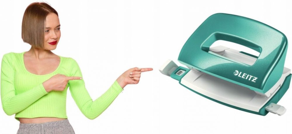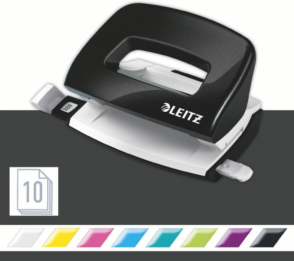 Praktická děrovačka kompaktní velikosti s ergonomickou rukojetí.