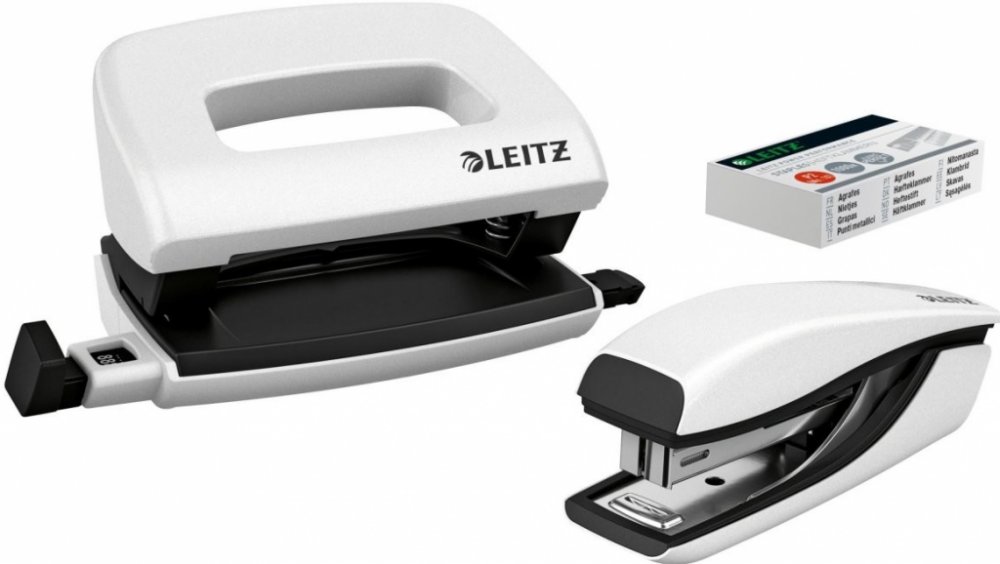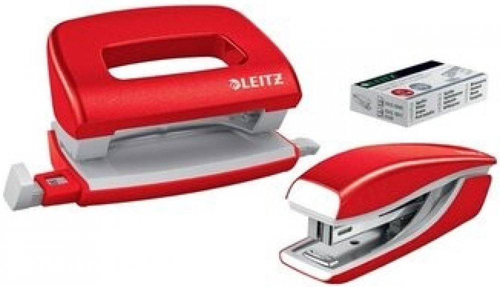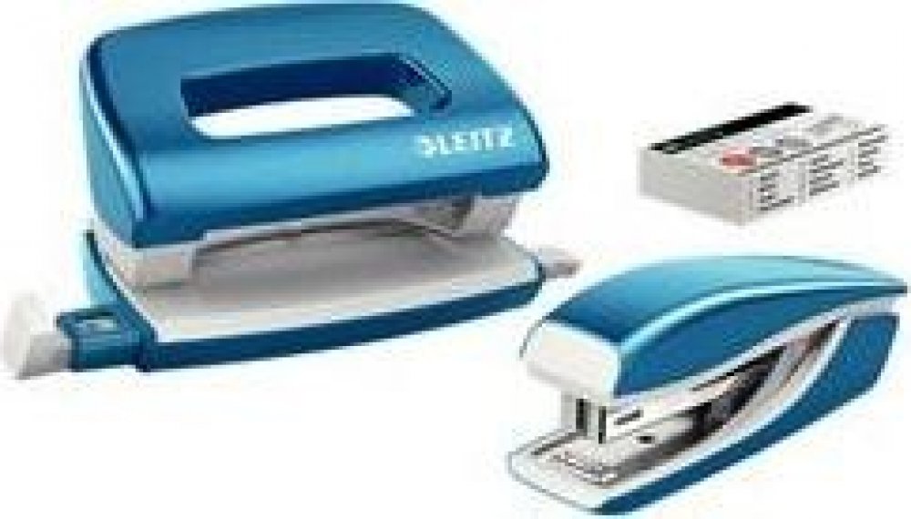 *Sada celokovové mini sešívačky a děrovačky v metalických barvách*Uzavřené sešívání; horní plnění drátků*Součástí je startovací balení drátků (1 000 ks)*Příložník pro všechny standardní formáty: A4, A5, A6*Rozměry: 6,7 × 7,1 × 10,0 cm (š × v × h) (děrovačka); 4,3 × 2,9 × 9,8 cm (š × v × h), hloubka vkládání: 4,0 cm (sešívačka)*Výkon 10 listů; drátky No. 10