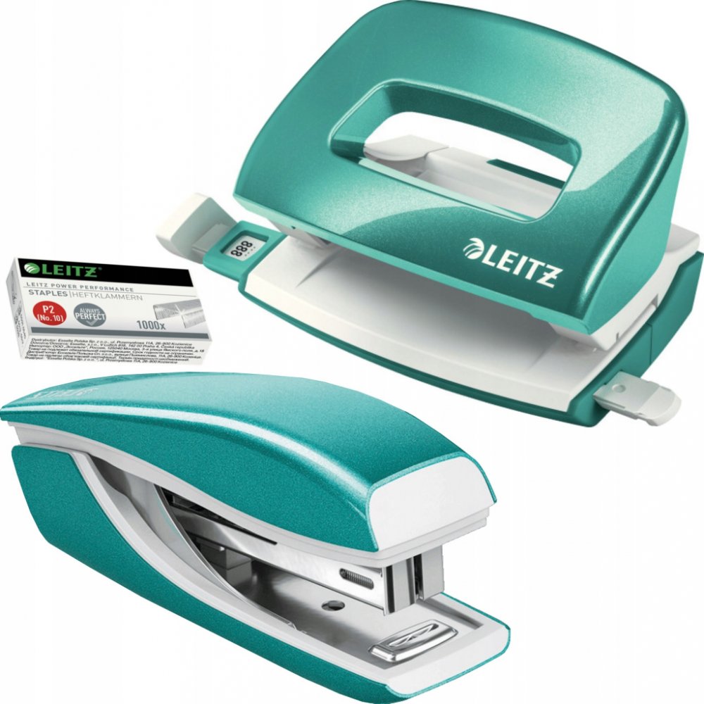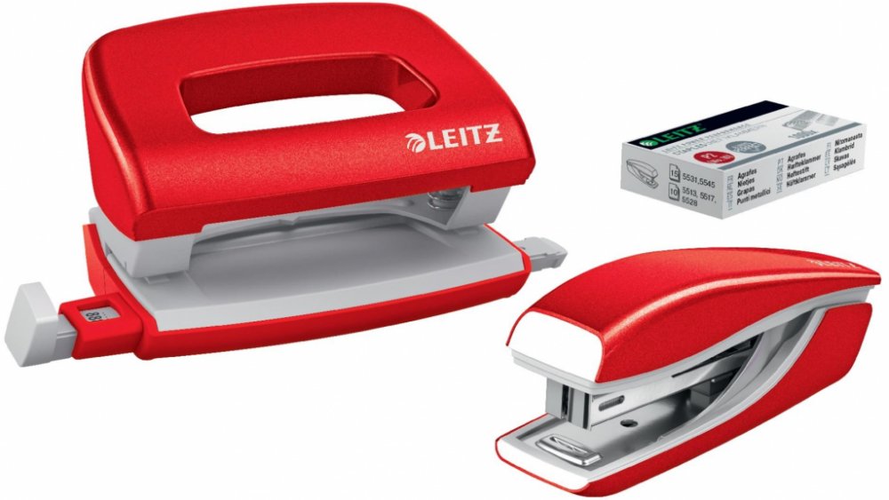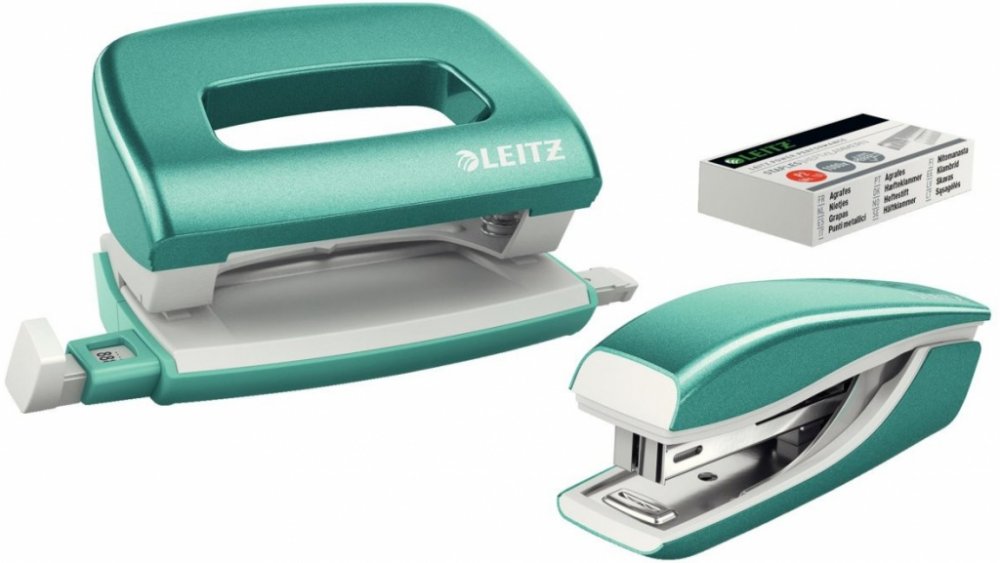 Sada sešívačky s děrovačkou v menších kompaktních rozměrech.