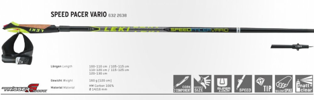 Leki SPEED PACER VARIO Nordic Walking Hole Kolekce: 2023 Délka: 120-130 cm Kód produktu: 65326381125 Speed Pacer Vario je dokonalým společníkem pro vyznavače nordic walkingu!