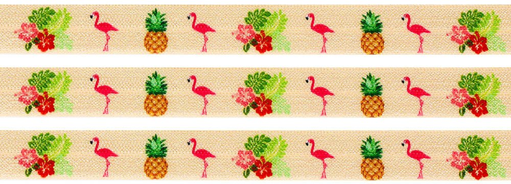 Lemovací pruženka - meruňková - plameňák & ananas & ibišek - 15 mm - 5 m