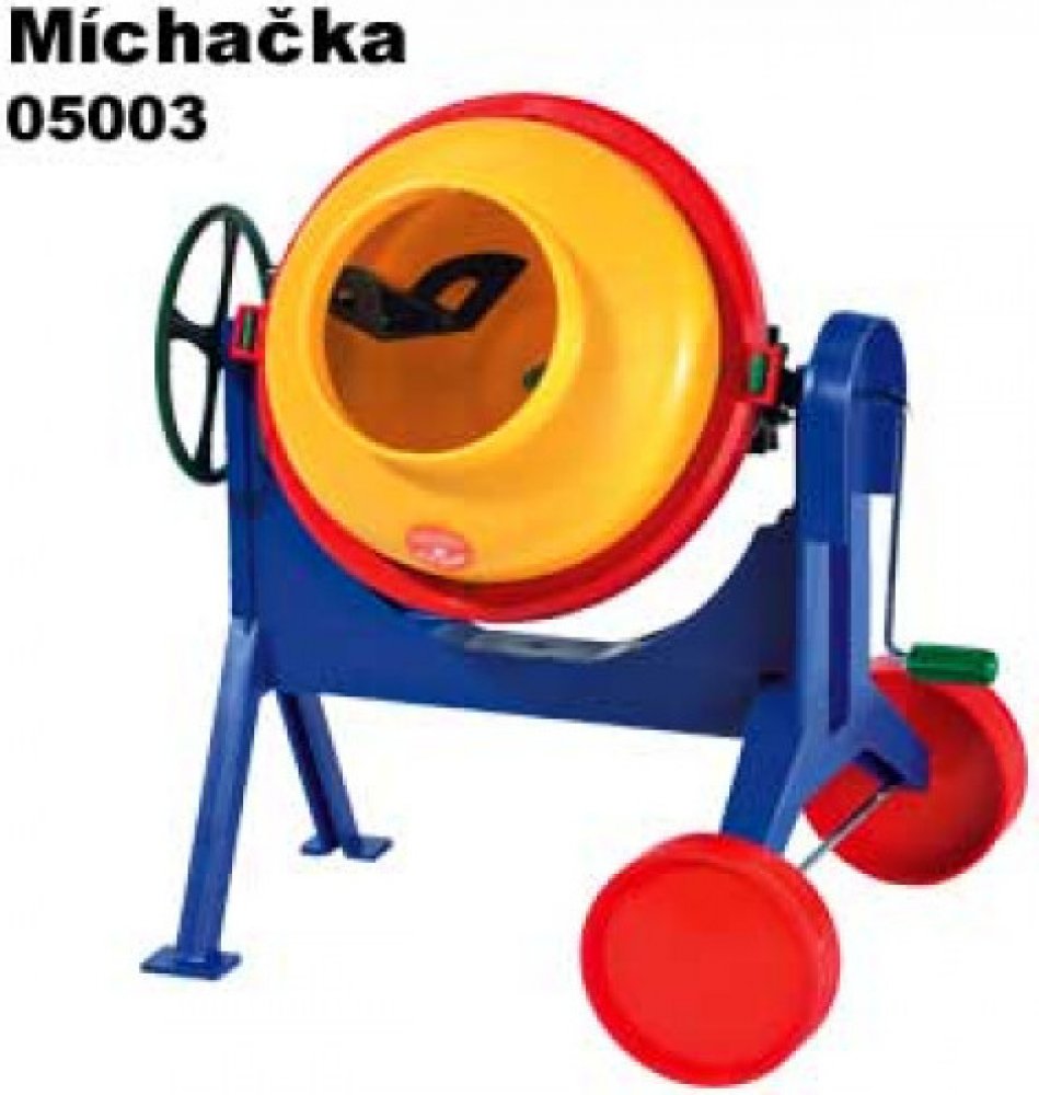 Skvělý dárek pro malé pomocníiky. Malá míchačka z kvalitního plastu sytých barev. Hračka je plně funkční - pomocí páčky se dá v míchačce pohodlně míchat téměř cokoliv. Díky 2 kolům lze míchačku snadno přemisťovat. Hračka je vhodná ven i dovnitř.