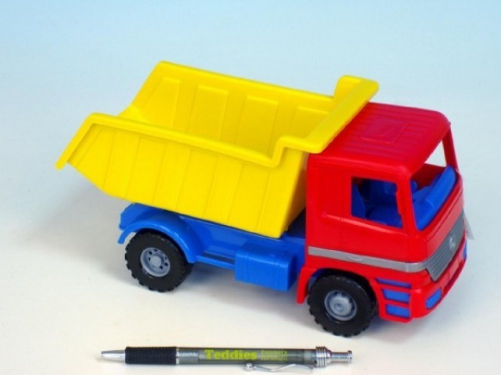 Plastový Mercedes sklápěčka s realistickým vzhledem. Plně mechanicky funkční. Vyroben z kvalitních
