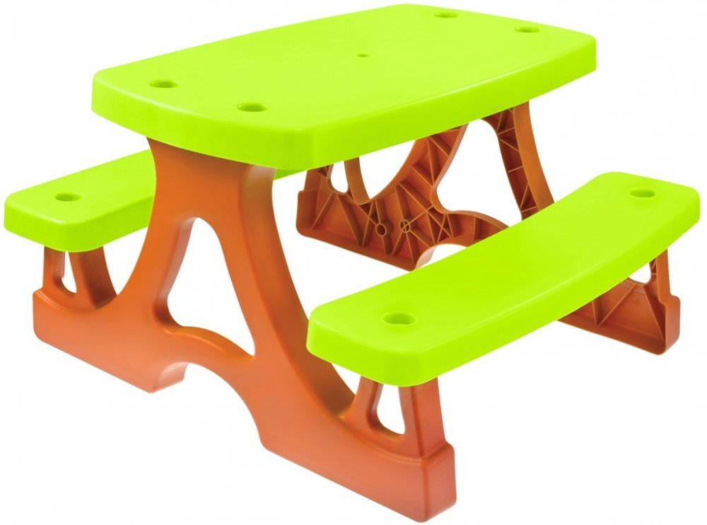 Stůl se dvěma lavicemi a velkou deskou. Ve stole je speciální otvor, který umožňuje instalaci deštníku.Rozměry balení: 47 cm x 80 cm x 21,5 cm Rozměry stolu: - šířka horní desky 43,5 cm - šířka lavice 17 cm - celková šířka 79 cm - celková délka 78 cm - celková výška 47 cm Maximální nosnost lavic 25 kg.