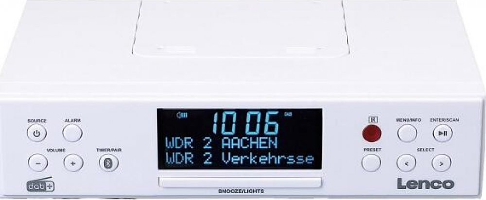kuchyňské rádio výkon 4 W napájení ze sítě digitální DAB+ FM zobrazuje čas a datum funkce budíku LCD displej dálkové ovládání Bluetooth LED osvětlení časovač 2 reproduktory V × Š × H: 5 × 22 × 15 cm